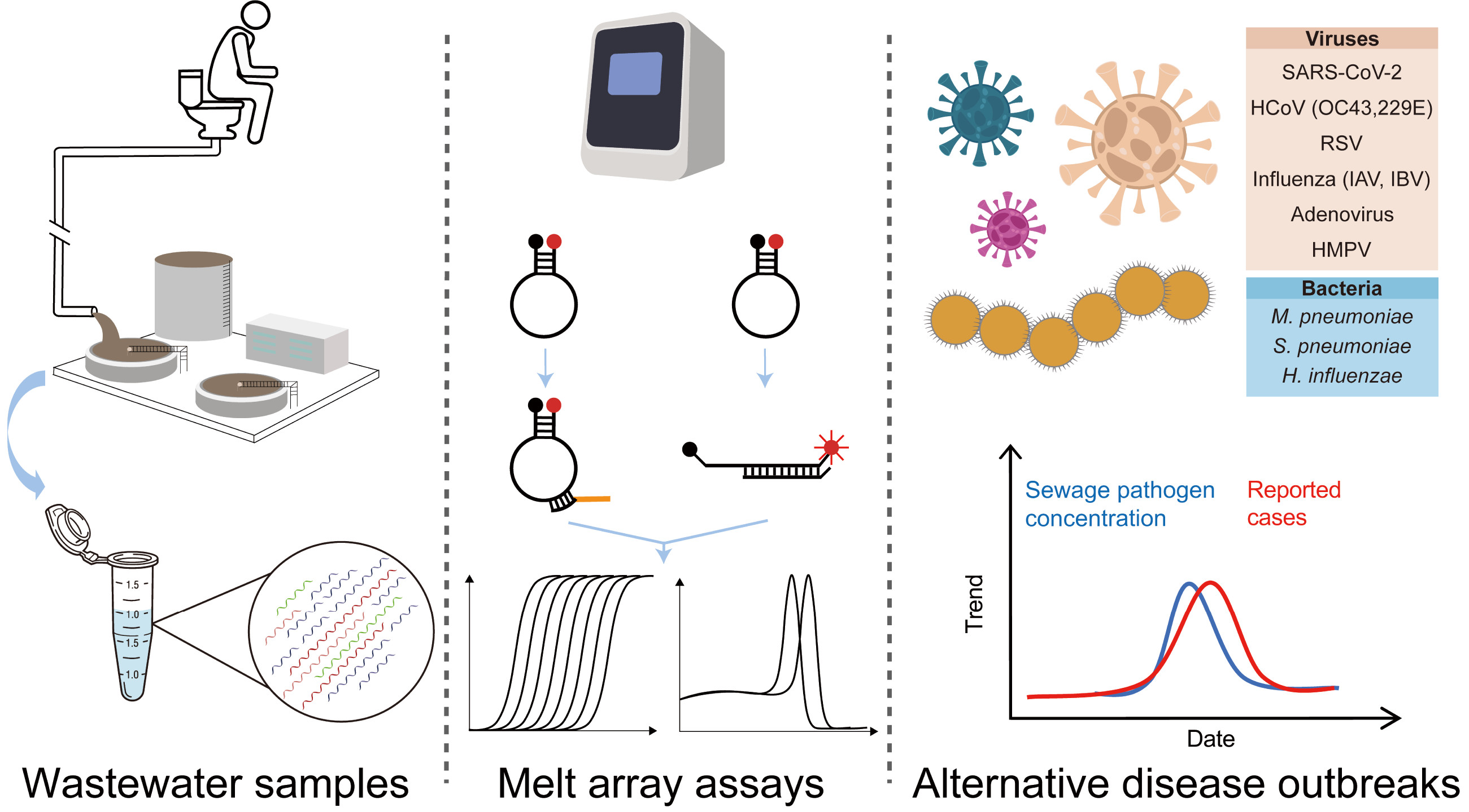 Clinical surveillance for respiratory pathogens has traditionally been challenging in low-resource settings, such as Western China. A low-cost wastewater monitoring network offers an alternative solution. To explore this, we first compared the sensitivity of a MeltArray-based qPCR assay, which detects 25 respiratory pathogens, with singleplex qPCR using both mock and real wastewater samples. We then employed this MeltArray assay to detect these respiratory pathogens in wastewater from a low-income region in Xi’an city from September 2023 to January 2024. Following this, qPCR and MLST were employed to quantify the dynamics of positive respiratory pathogens and confirm their genotypes. Results showed unusual surges in sewage influenza A virus (IAV) and adenovirus levels starting in October 2023, persisting until late December. Additionally, influenza B virus (IBV) outbreaks were identified beginning in late December. These findings matched the positivity rates reported by a sentinel hospital. For coronaviruses, HCoV-229E/OC43 were consistently detected in wastewater, while SARS-CoV-2 was occasionally found. The qPCR assays revealed continuous increases in sewage Mycoplasma pneumoniae and Hemophilus influenzae concentrations since September, both peaking in October. Genotyping confirmed the circulation of specific bacterial genotypes in the region. Therefore, to the best of our knowledge, this study is possibly the first to evaluate the efficacy of qPCR assays for wastewater monitoring of respiratory bacterial pathogens. Thus, these findings provide significant insights into the co-circulation of various respiratory pathogens during the autumn and winter of 2023, thereby suggesting that wastewater surveillance could be a powerful tool for the early warning of respiratory diseases.