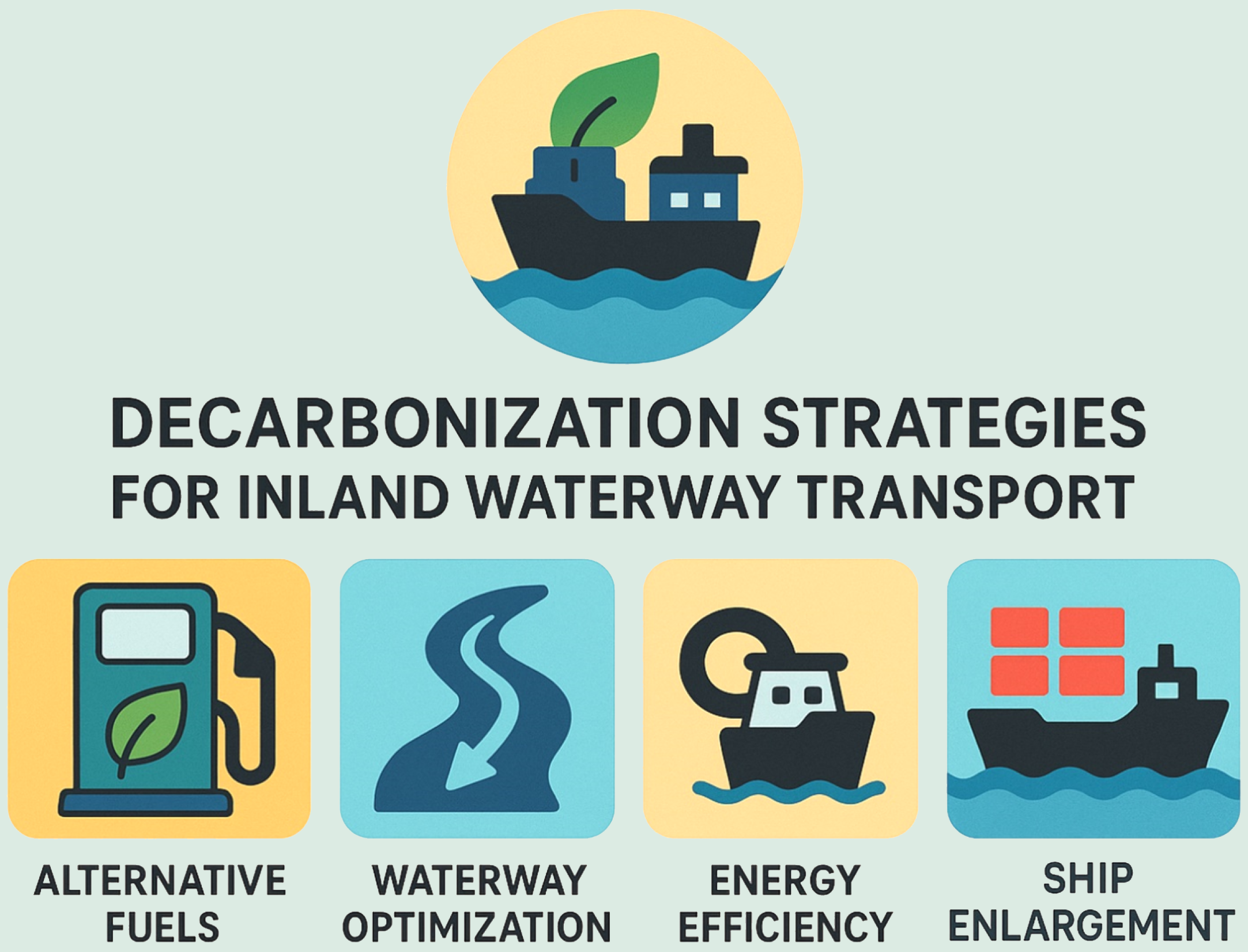 China’s inland waterway transport sector is facing the challenge of achieving carbon neutrality goals amidst its rapid development. However, the carbon mitigation potential of targeted interventions within inland waterway transport networks remains poorly understood. We construct a port-to-port carbon emission inventory for the inland waterway transport sector from 2019 to 2050. Jiangxi province, a typical dynamically developing region, is selected as the study area given its plans for the large-scale construction of new inland waterways in the future. Our results reveal that while waterway optimization improves cargo transport efficiency, it may lead to higher carbon emissions by 2030. However, with intensified mitigation efforts, it can contribute to significant emission reductions by 2050. In terms of strategic interventions, prioritizing transport technology upgrades (e.g., improve energy efficiency) in the short-term, while transitioning to alternative fuels in the long-term, could reduce to 0.76 Mt emissions by 2050, representing a 72% decrease compared to 2019 levels. Our findings from the typical complex waterway transport network in China offer valuable insights for managing carbon emissions in inland waterways globally, especially in regions contemplating the expansion of their inland waterway systems.