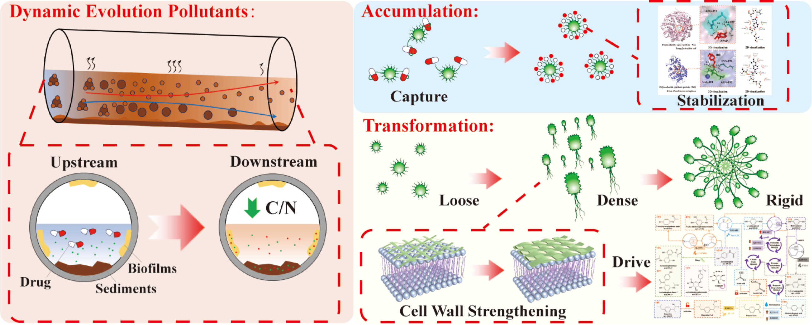 The widespread use of acetaminophen (APAP) and ibuprofen (IBU) since the SARS-CoV-2 pandemic has strongly impacted the environment due to their incomplete metabolism and excessive discharge into sewer systems. This study evaluated the accumulation and transformation of APAP and IBU in a laboratory sewer system under long-term operation. APAP and IBU attenuation followed pseudo-first-order kinetics (R2 > 0.95), with the maximum attenuation rates of 62.64% ± 0.02% and 47.38% ± 1.49%, respectively. Accumulation of APAP and IBU was observed in sediments, with enrichment increasing over time, reaching the maxima of 107.66 ± 4.71 ng/g and 35.60 ± 0.85 μg/g, respectively. The stabilization of APAP and IBU in sediments was primarily attributed to hydrogen bonding and hydrophobic interactions, as indicated by FTIR-2D-COS analysis and molecular docking simulations. Metagenomic analysis revealed enrichment of hydrolase and oxidase genes (amiA/B/C and CYP199A2) related to cell wall reconstruction and xenobiotic metabolism under APAP stress, as well as ACAT (a transferase related to energy metabolism) under IBU stress, suggesting potential transformation pathways of APAP and IBU in sewers. These findings indicate that the synergistic interaction between sediment adsorption and microbial degradation governs the spatiotemporal dynamics of pharmaceutical behavior in sewer systems. Notably, drug enrichment in sediments may increase long-term contamination risks due to delayed pollutant release and enhanced adhesion potential., This study provides crucial evidence for sewer system management and the effective control of emerging pharmaceutical contaminants.
