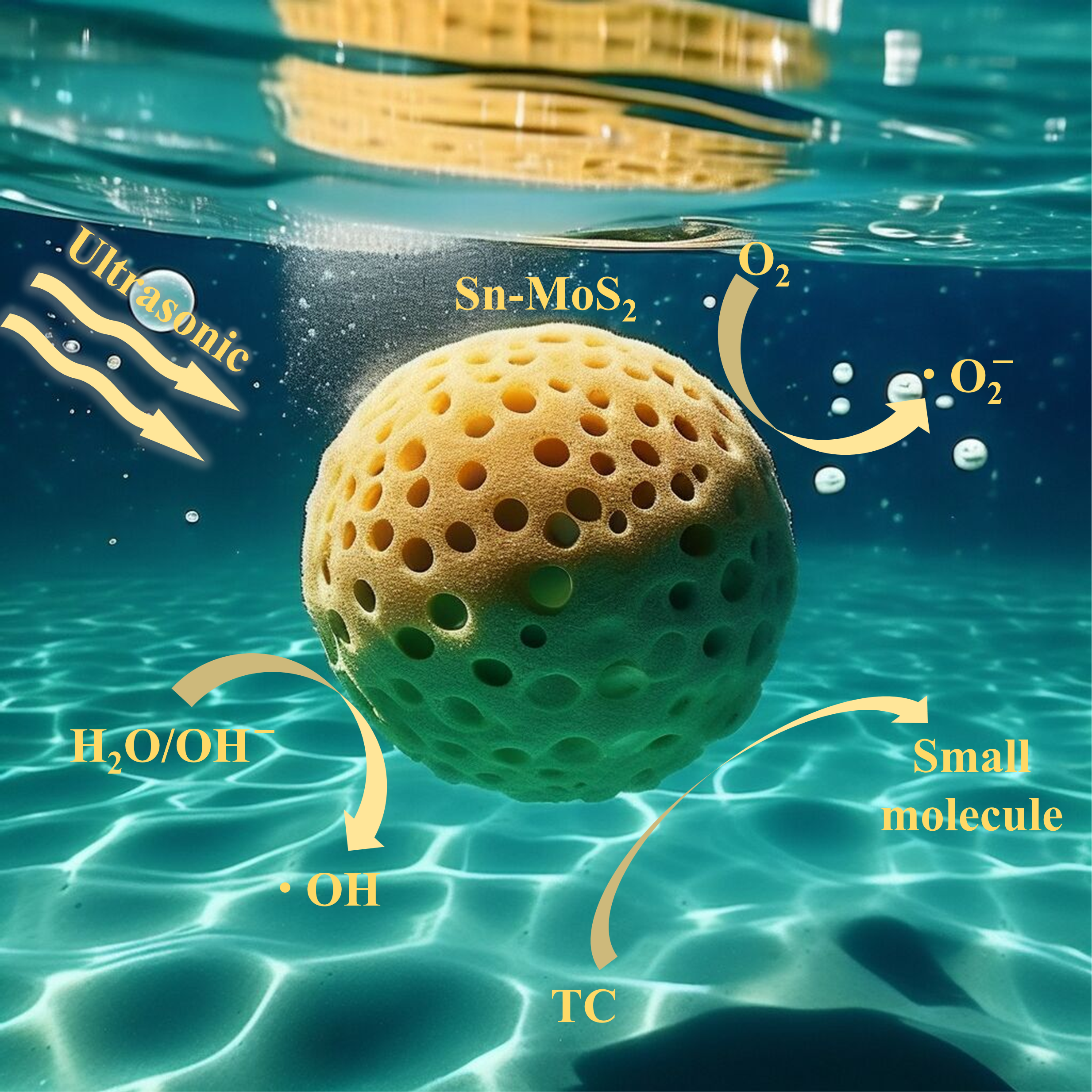 Harnessing renewable energy to decrease pollution is a significant area of investigation within environmental management. In this paper, tin-doped molybdenum disulfide (Sn-MoS2) piezoelectric materials with excellent piezoelectric properties have been prepared. PFM and electrochemical test results show that Sn-MoS2 has enhanced piezoelectric properties. The findings from UV-Vis diffuse reflectance and XPS valence band analysis indicate that the introduction of tin modifies the band gap of MoS2, thereby facilitating electron flow within the material. In an ultrasonic environment, Sn-MoS2 achieved a tetracycline removal efficiency of 98.3% in just 50 min, 1.51 times more effective than pure MoS2. The EPR results revealed that hydroxyl (–OH) and superoxide radicals (–O2−) significantly contribute to the breakdown of tetracycline (TC). In addition, the potential degradation mechanisms and pathways have been suggested. This research offers a viable approach for addressing waterborne organic contaminants and holds significant potential for wider applications.