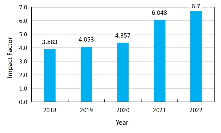 The Journal Impact Factor is defined as all citations to the journal in the current JCR year to items published in the previous two years, divided by the total number of scholarly items (these comprise articles, reviews, and proceedings papers) published in the journal in the previous two years. For example, the journal impact factor 2022 for a journal would be calculated as follows: