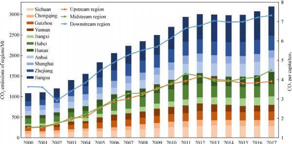 With the relocation of heavy industries moving from downstream region to upstream and midstream regions in the Yangtze River Economic Belt (YREB), it is critical to encourage coordinated low carbon development in different regions within the YREB. This paper uncovers the evolution of CO2 emissions in different regions within the YREB for the period of 2000–2017. It decomposes regional CO2 emission changes using the temporal and cross-regional three-layer logarithmic mean Divisia index (LMDI) method. Besides, it decomposes industrial CO2 emission changes using the temporal two-layer LMDI method. The research results show that economic growth is the major driver for regional CO2 emission disparities. The mitigation drivers, such as energy intensity and energy structure, lead to a more decreased CO2 emission in the downstream region than in the upstream and midstream regions. In addition, it proposes several policy recommendations based upon the local realities, including improving energy efficiency, optimizing energy structure, promoting advanced technologies and equipment transfers, and coordinating the development in the upstream, midstream and downstream regions within the YREB.