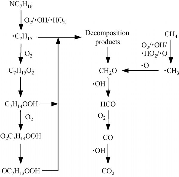High-pressure direct-injection (HPDI) of natu- ral gas is one of the most promising solutions for future ship engines, in which the combustion process is mainly controlled by the chemical kinetics. However, the employment of detailed chemical models for the multi-dimensional combustion simulation is significantly expensive due to the large scale of the marine engine. In the present paper, a reduced n-heptane/methane model consisting of 35-step reactions was constructed using multiple reduction approaches. Then this model was further reduced to include only 27 reactions by utilizing the HyChem (Hybrid Chemistry) method. An overall good agreement with the experimentally measured ignition delay data of both n-heptane and methane for these two reduced models was achieved and reasonable predictions for the measured laminar flame speeds were obtained for the 35-step model. But the 27-step model cannot predict the laminar flame speed very well. In addition, these two reduced models were both able to reproduce the experimentally measured in-cylinder pressure and heat release rate profiles for a HPDI natural gas marine engine, the highest error of predicted combustion phase being 6.5%. However, the engine-out CO emission was over-predicted and the highest error of predicted NOx emission was less than 12.9%. The predicted distributions of temperature and equivalence ratio by the 35-step and 27-step models are similar to those of the 334-step model. However, the predicted distributions of OH and CH2O are significantly different from those of the 334-step model. In short, the reduced chemical kinetic models developed provide a high-efficient and dependable method to simulate the characteristics of combustion and emissions in HPDI natural gas marine engines.