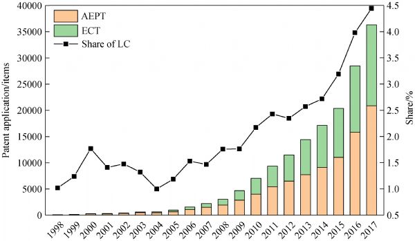 Low-carbon energy technology (LC) innovation contributes to both environmental protection and economic development. Using the panel data of 30 provinces/autonomous regions/municipalities in China from 1998 to 2017, this paper constructs a two-layer logarithmic mean Divisia index (LMDI) model to uncover the factors influencing the variation of the innovation of LC in China’s industrial sectors, including the alternative energy production technology (AEPT) and the energy conversation technology (ECT). The results show that China’s industrial LC patent applications rapidly increased after 2005 and AEPT patent applications outweighed ECT patent applications all the time with a gradually narrowing gap. Low-carbon degree played the dominant role in promoting the increase in China’s industrial LC patent applications, followed by the economic scale, R&D (research and development) efficiency, and R&D share. Economic structure contributed to the increases in LC patent applications in the central and the western regions, while led to the decreases in the eastern region, the north-eastern region, and Chinese mainland . Low-carbon degree and economic scale were two main contributors to the growths of both industrial AEPT patent applications and ECT patent applications in Chinese mainland and the four regions. Several policy recommendations are made to further promote industrial innovation in China.