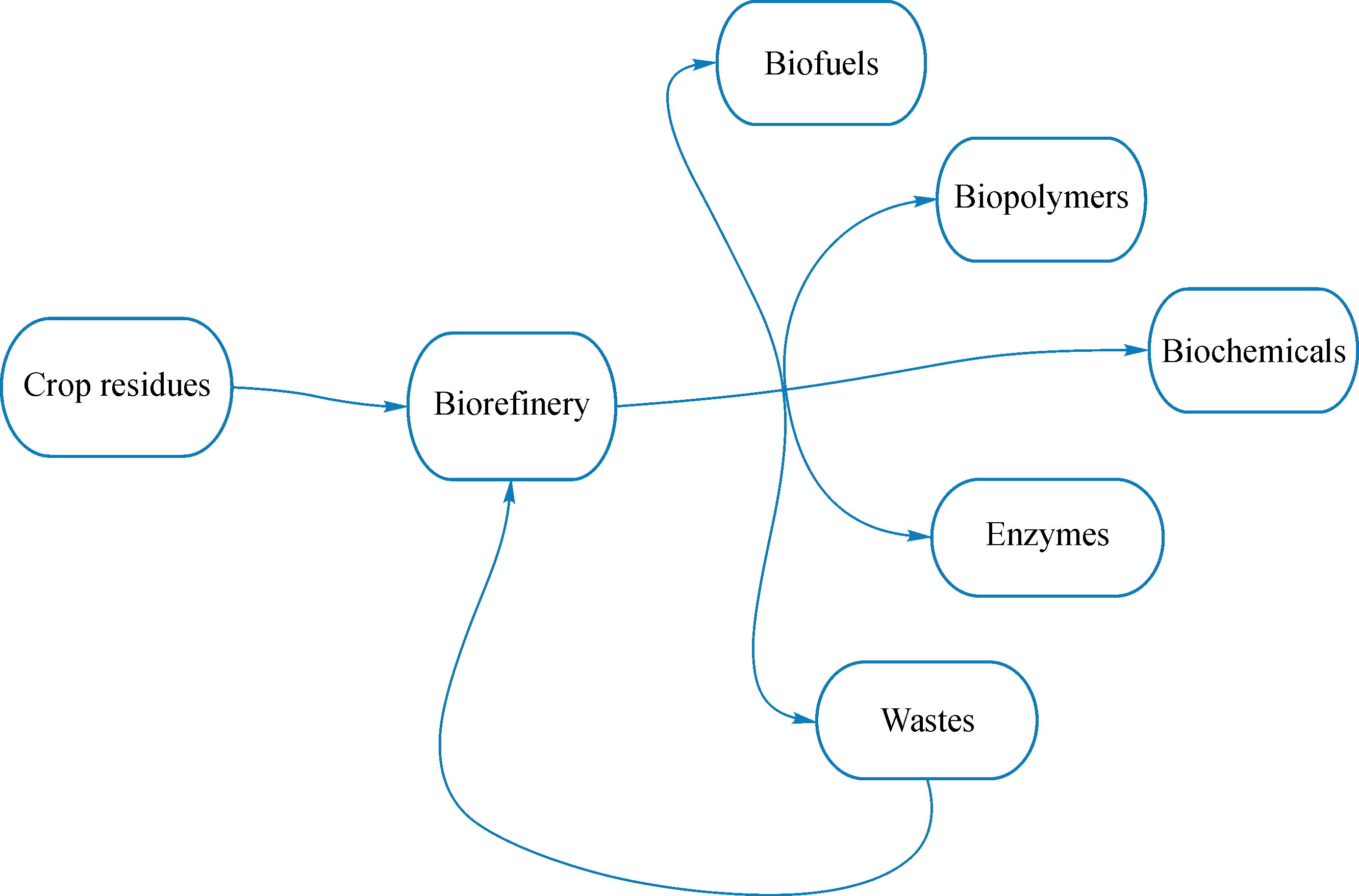 Interest in lignocellulosic biomass conversion technologies has increased recently because of their potential to reduce the dependency on non-renewable feedstocks. Residues from a variety of crops are the major source of lignocellulose, which is being produced in increasingly large quantities worldwide. The commercial exploitation of crop residues as feedstocks for biorefineries which could be used to produce a variety of goods such as biofuels, biochemicals, bioplastics, and enzymes is an attractive approach not only for adding value to residues but also for providing renewable products required by the expanding bioeconomy market. Moreover, the implementation of biorefineries in different regions has the potential to add value to the specific crop residues produced in the region. In this review, several aspects of crop residue application in biorefineries are discussed, including the role of crop residues in the bioeconomy and circular economy concepts, the main technical aspects of crop residue conversion in biorefineries, the main crop residues generated in different regions of the world and their availability, the potential value-added bioproducts that can be extracted or produced from each crop residue, and the major advantages and challenges associated with crop residue utilization in biorefineries. Despite their potential, most biomass refining technologies are not sufficiently advanced or financially viable. Several technical obstacles, especially with regard to crop residue collection, handling, and pre-treatment, prevent the implementation of biorefineries on a commercial scale. Further research is needed to resolve these scale-up-related challenges. Increased governmental incentives and bioeconomic strategies are expected to boost the biorefinery market and the cost competitiveness of biorefinery products.