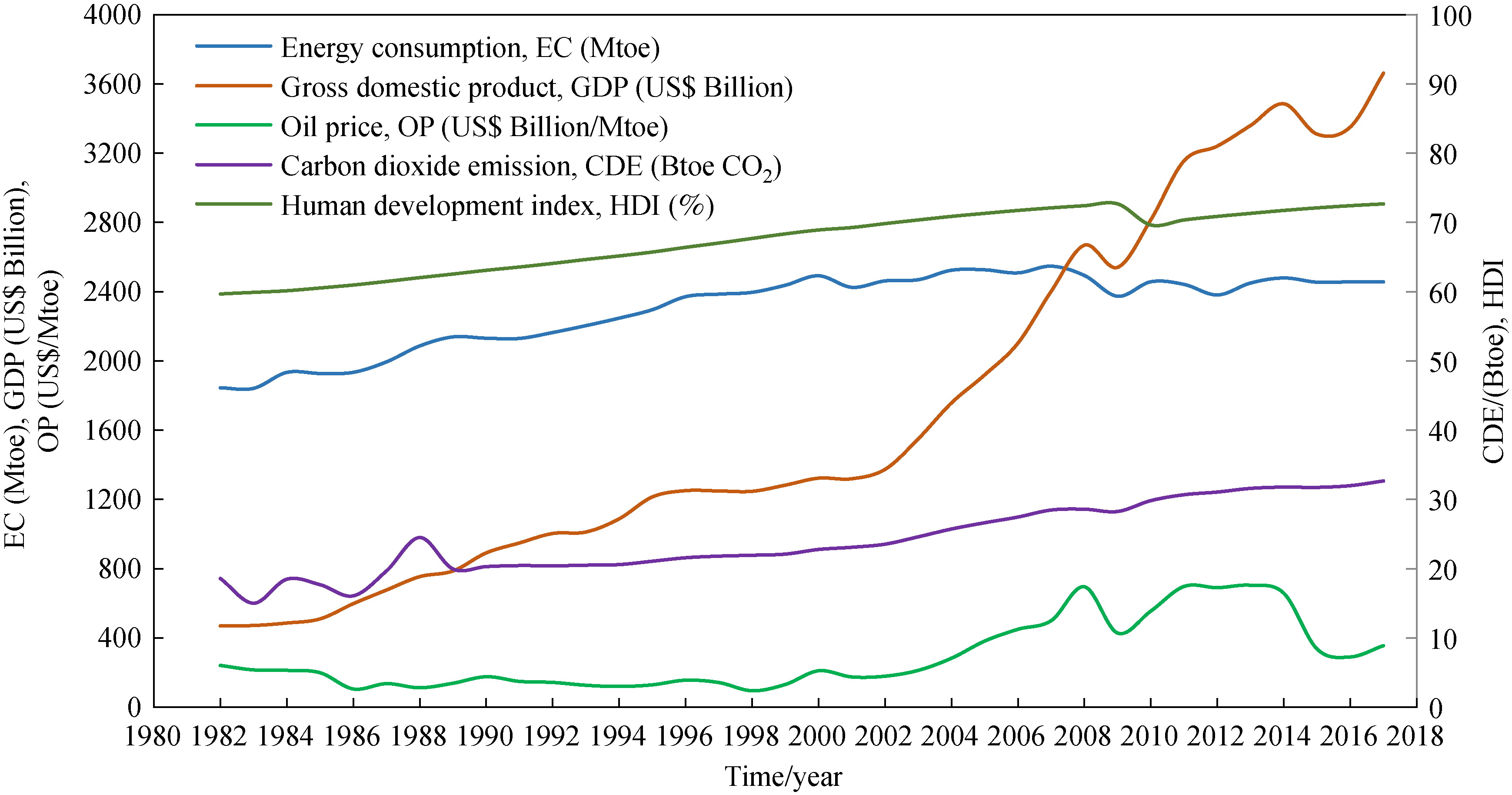 Modeling, simulation, and prediction of global energy indices remain veritable tools for econometric, engineering, analysis, and prediction of energy indices. Thus, this paper differentially modeled, simulated, and non-differentially predicated the global energy indices. The state-of-the-art of the research includes normalization of energy indices, generation of differential rate terms, and regression of rate terms against energy indices to generate coefficients and unexplained terms. On imposition of initial conditions, the solution to the system of linear differential equations was realized in a Matlab environment. There was a strong agreement between the simulated and the field data. The exact solutions are ideal for interpolative prediction of historic data. Furthermore, the simulated data were upgraded for extrapolative prediction of energy indices by introducing an innovative model, which is the synergy of deflated and inflated prediction factors. The innovative model yielded a trendy prediction data for energy consumption, gross domestic product, carbon dioxide emission and human development index. However, the oil price was untrendy, which could be attributed to odd circumstances. Moreover, the sensitivity of the differential rate terms was instrumental in discovering the overwhelming effect of independent indices on the dependent index. Clearly, this paper has accomplished interpolative and extrapolative prediction of energy indices and equally recommends for further investigation of the untrendy nature of oil price.