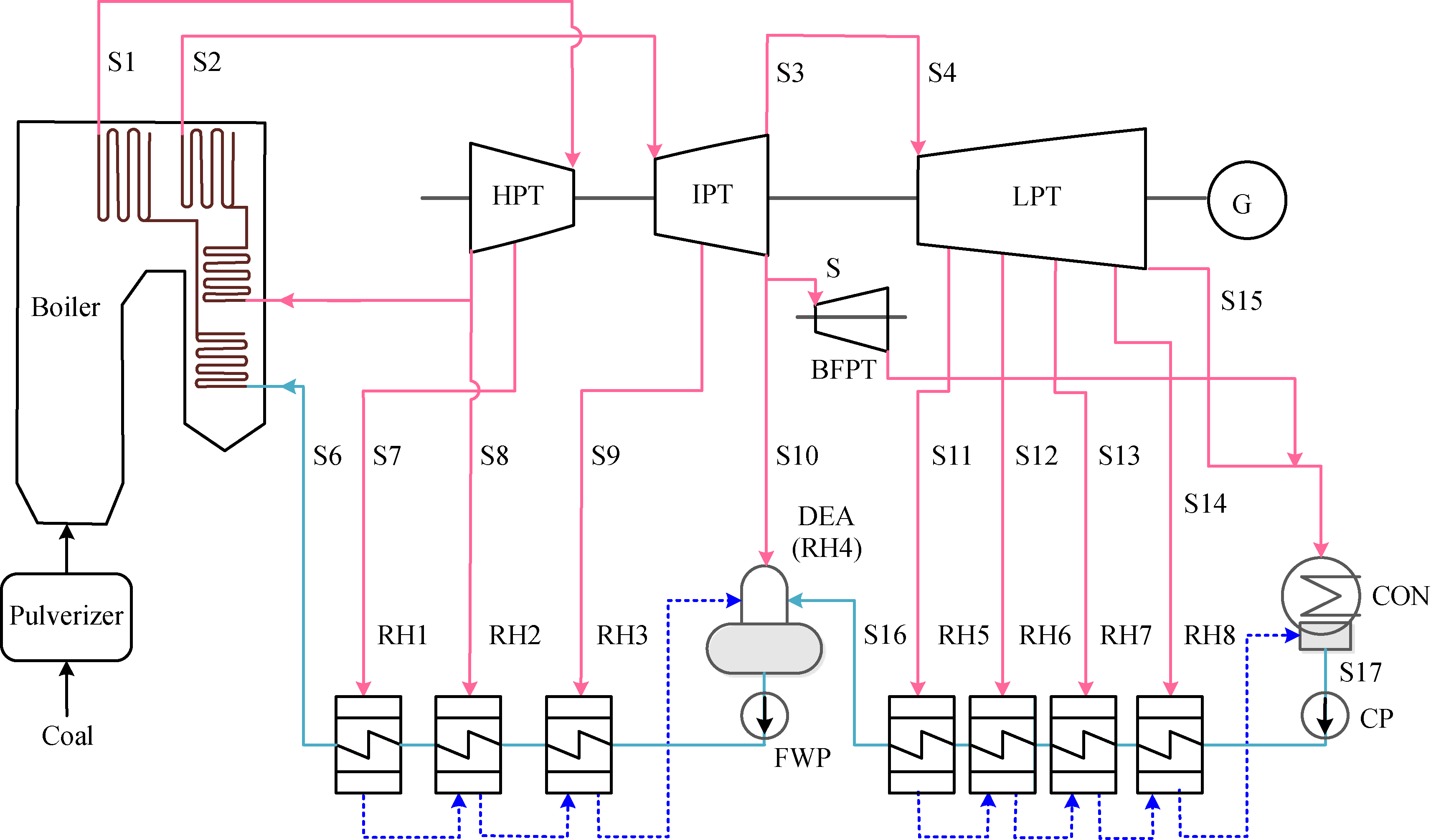 A promising scheme for coal-fired power plants in which biomass co-firing and carbon dioxide capture technologies are adopted and the low-temperature waste heat from the CO2 capture process is recycled to heat the condensed water to achieve zero carbon emission is proposed in this paper. Based on a 660 MW supercritical coal-fired power plant, the thermal performance, emission performance, and economic performance of the proposed scheme are evaluated. In addition, a sensitivity analysis is conducted to show the effects of several key parameters on the performance of the proposed system. The results show that when the biomass mass mixing ratio is 15.40% and the CO2 capture rate is 90%, the CO2 emission of the coal-fired power plant can reach zero, indicating that the technical route proposed in this paper can indeed achieve zero carbon emission in coal-fired power plants. The net thermal efficiency decreases by 10.31%, due to the huge energy consumption of the CO2 capture unit. Besides, the cost of electricity (COE) and the cost of CO2 avoided (COA) of the proposed system are 80.37 $/MWh and 41.63 $/tCO2, respectively. The sensitivity analysis demonstrates that with the energy consumption of the reboiler decreasing from 3.22 GJ/tCO2 to 2.40 GJ/ tCO2, the efficiency penalty is reduced to 8.67%. This paper may provide reference for promoting the early realization of carbon neutrality in the power generation industry.