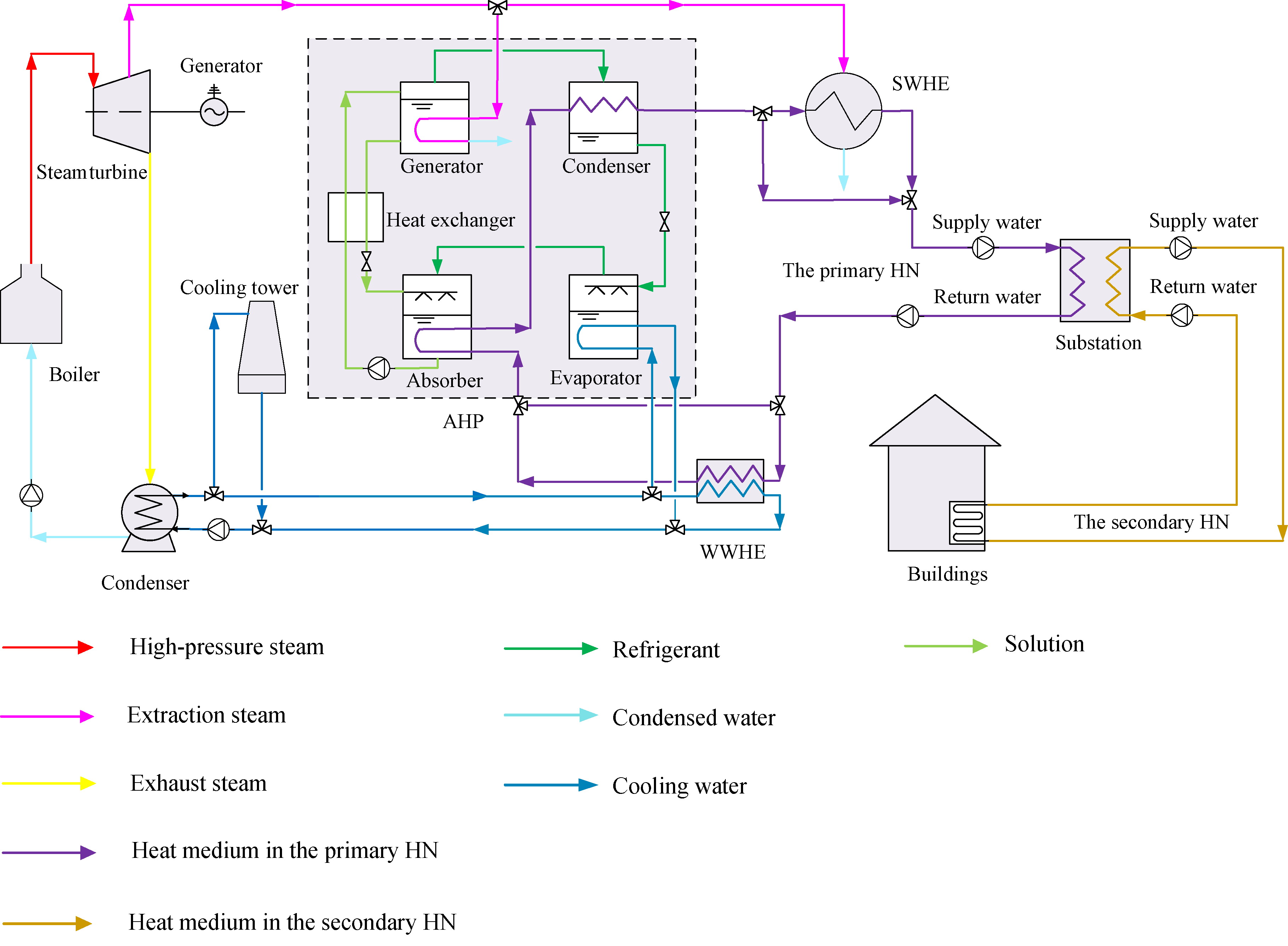 The increase of insulation thickness (IT) results in the decrease of the heat demand and heat medium temperature. A mathematical model on the optimum environmental insulation thickness (OEIT) for minimizing the annual total environmental impact was established based on the amount of energy and energy grade reduction. Besides, a case study was conducted based on a residential community with a combined heat and power (CHP)-based district heating system (DHS) in Tianjin, China. Moreover, the effect of IT on heat demand, heat medium temperature, exhaust heat, extracted heat, coal consumption, carbon dioxide (CO2) emissions and sulfur dioxide (SO2) emissions as well as the effect of three types of insulation materials (i.e., expanded polystyrene, rock wool and glass wool) on the OEIT and minimum annual total environmental impact were studied. The results reveal that the optimization model can be used to determine the OEIT. When the OEIT of expanded polystyrene, rock wool and glass wool is used, the annual total environmental impact can be reduced by 84.563%, 83.211%, and 86.104%, respectively. It can be found that glass wool is more beneficial to the environment compared with expanded polystyrene and rock wool.