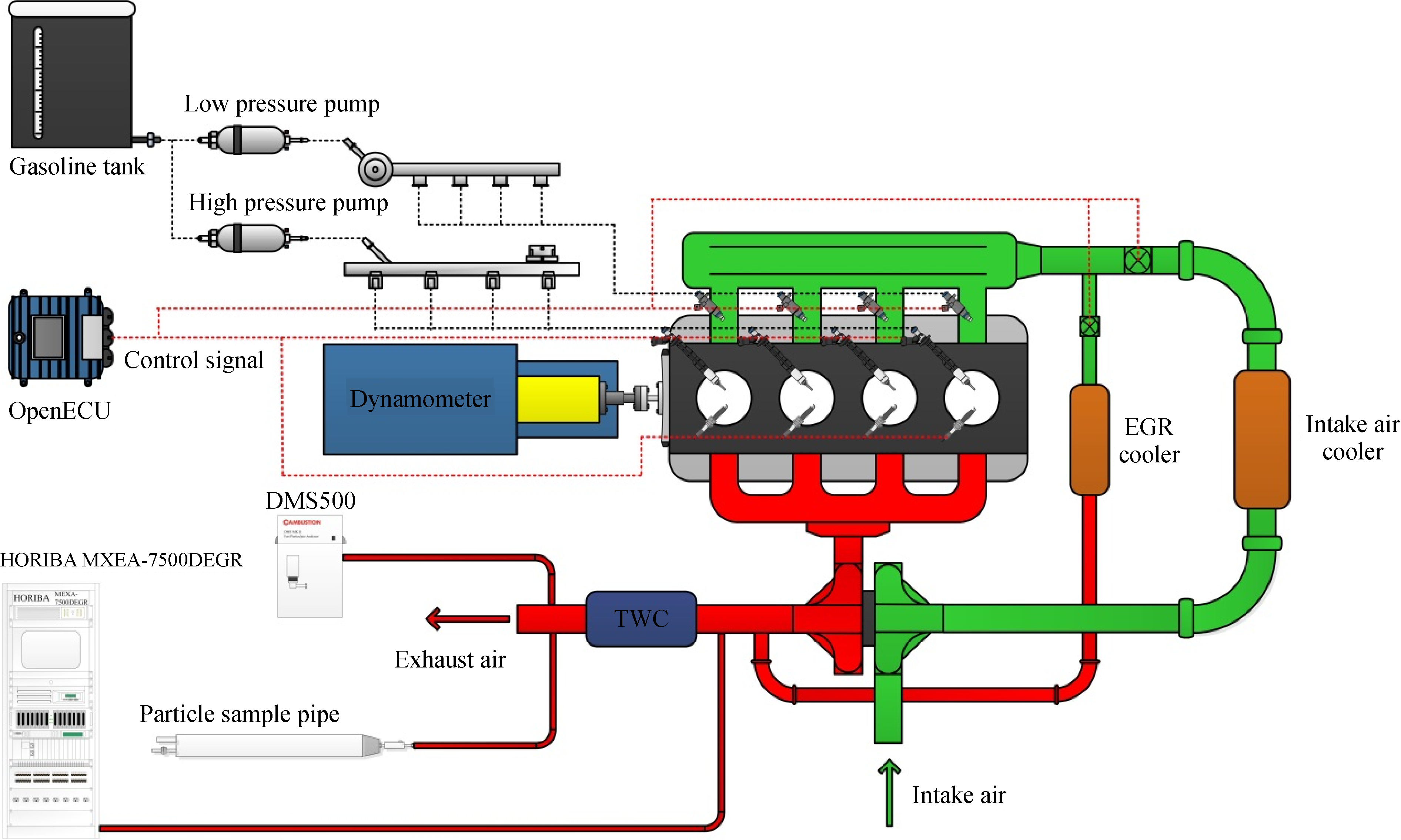 Due to increasingly stringent fuel consumption and emission regulation, improving thermal efficiency and reducing particulate matter emissions are two main issues for next generation gasoline engine. Lean burn mode could greatly reduce pumping loss and decrease the fuel consumption of gasoline engines, although the burning rate is decreased by higher diluted intake air. In this study, dual injection stratified combustion mode is used to accelerate the burning rate of lean burn by increasing the fuel concentration near the spark plug. The effects of engine control parameters such as the excess air coefficient (Lambda), direct injection (DI) ratio, spark interval with DI, and DI timing on combustion, fuel consumption, gaseous emissions, and particulate emissions of a dual injection gasoline engine are studied. It is shown that the lean burn limit can be extended to Lambda= 1.8 with a low compression ratio of 10, while the fuel consumption can be obviously improved at Lambda= 1.4. There exists a spark window for dual injection stratified lean burn mode, in which the spark timing has a weak effect on combustion. With optimization of the control parameters, the brake specific fuel consumption (BSFC) decreases 9.05% more than that of original stoichiometric combustion with DI as 2 bar brake mean effective pressure (BMEP) at a 2000 r/min engine speed. The NOx emissions before three-way catalyst (TWC) are 71.31% lower than that of the original engine while the particle number (PN) is 81.45% lower than the original engine. The dual injection stratified lean burn has a wide range of applications which can effectively reduce fuel consumption and particulate emissions. The BSFC reduction rate is higher than 5% and the PN reduction rate is more than 50% with the speed lower than 2400 r/min and the load lower than 5 bar.