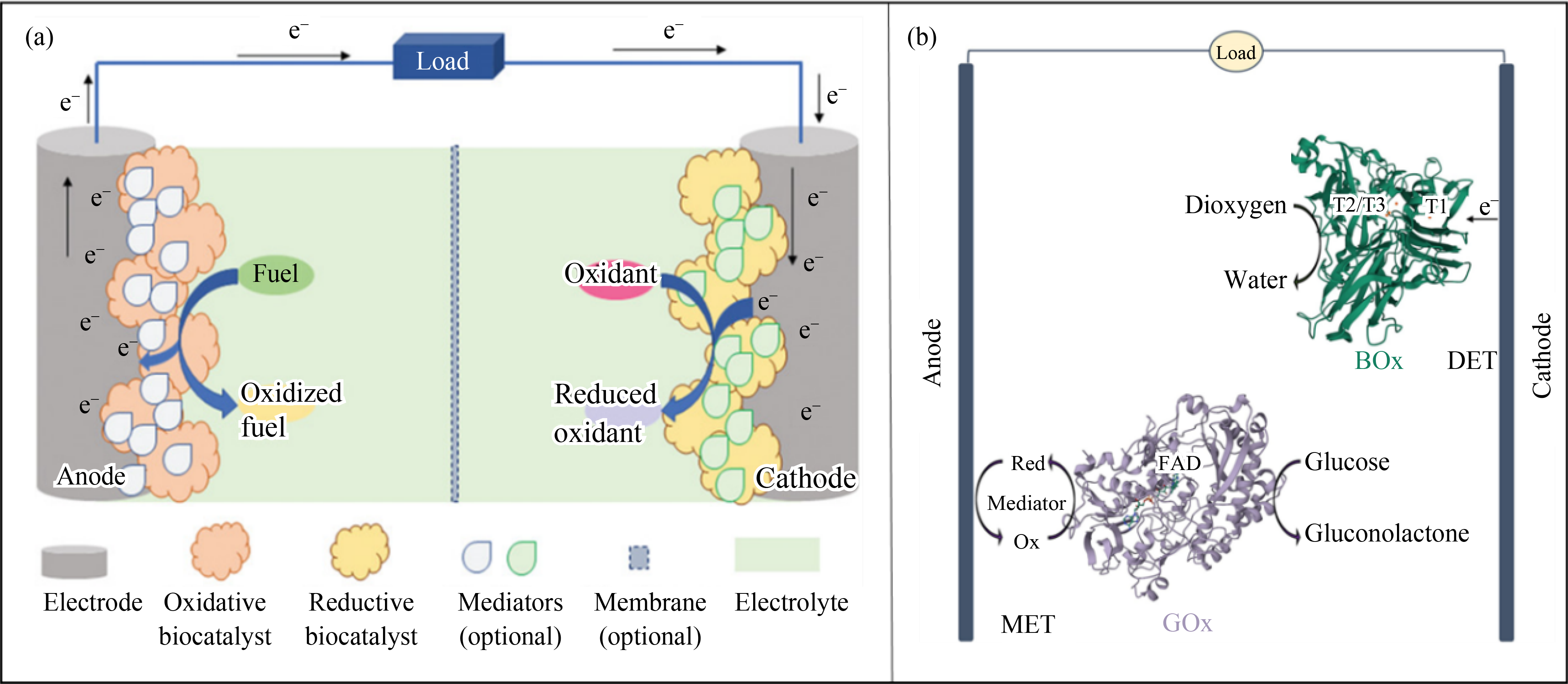 Enzymatic biofuel cells (EBFCs), which generate electricity through electrochemical reactions between metabolites and O2/air, are considered a promising alternative power source for wearable and implantable bioelectronics. However, the main challenges facing EBFCs are the poor stability of enzymes and the low electron transfer efficiency between enzymes and electrodes. To enhance the efficiency of EBFCs, researchers have been focusing on the development of novel functional nanomaterials. This mini-review first introduces the working principles and types of EBFCs, highlighting the key roles of nanomaterials, such as enzyme immobilization and stabilization, promotion of electron transfer and catalytic activity. It then summarizes the recent advancements in their application in wearable and implantable devices. Finally, it explores future research direction and the potential of high-performance EBFCs for practical applications.