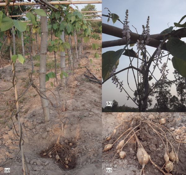 Pueraria mirifica Airy Shaw et Suvatabandhu is a medicinal plant endemic to Thailand. It has been used in Thai folklore medicine for its rejuvenating qualities in aged women and men for nearly one hundred years. Indeed, it has been claimed that P. mirifica contains active phytoestrogens (plant substances with estrogen-like activity). Using high performance liquid chromatography, at least 17 phytoestrogens, mainly isoflavones, have been isolated. Thus, fairly considerable scientific researches, both in vitro in cell lines and in vivo in various species of animals including humans, have been conducted to date to address its estrogenic activity on the reproductive organs, bones, cardiovascular diseases and other climacteric related symptoms. The antioxidative capacity and antiproliferative effect on tumor cell lines have also been assessed. In general, P. mirifica could be applicable for preventing, or as a therapeutic for, the symptoms related to estrogen deficiency in menopausal women as well as in andropausal men. However, the optimal doses for each desirable effect and the balance to avoid undesired side effects need to be calculated before use.