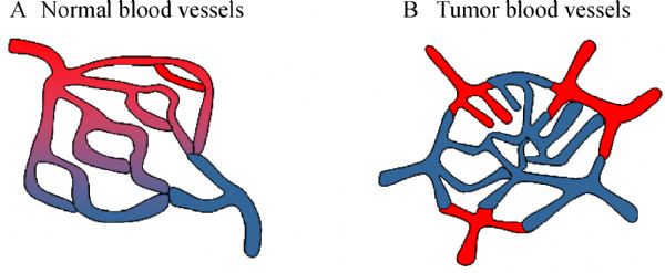 Antitumor angiogenic therapy has been shown promising in the treatment of several advanced cancers since the approval of the first antiangiogenic drug Avastin in 2004. Although the current antiangiogenic drugs reduce the density of tumor blood vessels and result in tumor shrinkage at the early stage of treatment, recent studies have shown that antiangiogenic therapy has transient and insufficient efficacy, resulting in tumor recurrence in patients after several months of treatment. Blockage of blood and oxygen supplies creates a hypoxic and acidic microenvironment in the tumor tissues, which fosters tumor cells to become more aggressive and metastatic. In 2001, Jain proposed tumor vascular normalization as an alternative approach to treating cancers based on the pioneering work on tumor blood vessels by several other researchers. At present, normalizing the disorganized tumor vasculature, rather than disrupting or blocking them, has emerged as a new option for anticancer therapy. Preclinical and clinical data have shown that tumor vascular normalization using monoclonal antibodies, proteins, peptides, small molecules, and pericytes resulted in decreased tumor size and reduced metastasis. However, current tumor vascular normalizing drugs display moderate anticancer efficacy. Accumulated data have shown that a variety of vasculogenic/angiogenic tumor cells and genes play important roles in tumor neovascularization, growth, and metastasis. Therefore, multiple-targeting of vasculogenic tumor cells and genes may improve the efficacy of tumor vascular normalization. To this end, the combination of antiangiogenic drugs with tumor vascular normalizing therapeutics, as well as the integration of Western medicine with traditional Chinese medicine, may provide a good opportunity for discovering novel tumor vascular normalizing drugs for an effective anticancer therapy.