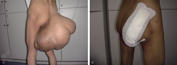 The authors present a case report of a giant Müllerian duct cyst in the perineum. A 37-year-old man presented with a mass with the size of 50 cm×40 cm×30 cm in the perineum. Computed tomography (CT) scan and magnetic resonance imaging (MRI) of the pelvis and perineum found a huge multilocular cystic mass. X-ray film of the pelvis showed a giant soft-tissue shadow of high density in the perineum. Voiding cystourethrogram did not show any cyst interlinked to posterior urethra. After related examinations, the patient underwent open surgical resection of the cyst. Pathologic examination confirmed the presence of a Müllerian duct cyst. Huge Müllerian duct cyst is uncommon in clinic. Treatments of Müllerian duct cysts depend on their sizes and symptoms.
