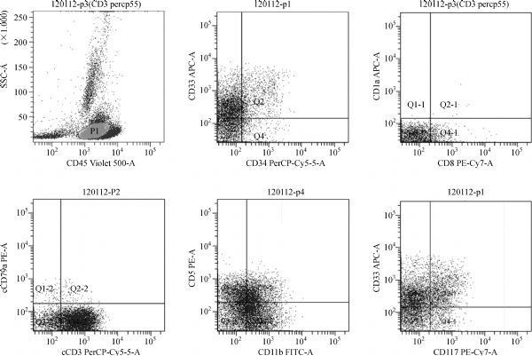 Acute lymphoblastic leukemia includes T-cell acute lymphoblastic leukemia (T-ALL) and B-cell acute lymphoblastic leukemia (B-ALL). In children, T-ALL usually has a worse prognosis than B-ALL, although childhood T-ALL prognoses have improved remarkably. The varying outcomes among T-ALL cases suggest that an unrecognized biological heterogeneity may contribute to chemo-resistance. Deep exploration of T-lymphocyte development in recent years has found a subgroup of patients with a phenotype that resembles early T-cell precursor, which confers a much poorer prognosis than any other form of T-ALL. This novel subtype of T-ALL was called early T-cell precursor acute lymphoblastic leukemia (ETP-ALL). Flow cytometry data from T-ALL patients enrolled in Shanghai Children’s Medical Center between July 2002 and October 2010 were assessed according to Dr. Campana’s protocol. Among total 89 T-ALL cases, 74 cases had enough immunophenotype data available to differentiate between ETP (CD1a-, CD8-, CD5dim, at least one marker of stem cell or myeloid lineage) and non-ETP. From these 74 subjects, 12 ETP-ALL cases (16.2%) were identified. The event-free survival (EFS) rate at 66.8 months was 11.1%±10.1% for ETP-ALL and 57.6%±5.6% for non-ETP-ALL (P=0.003). The overall survival rates were 13.3%±11.0% for ETP-ALL and 64.7%±6.3% for non-ETP-ALL (P=0.002). Our findings demonstrate that early T-cell precursor leukemia is a very high-risk subtype of acute lymphoblastic leukemia with poor prognosis.