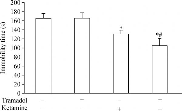 Ketamine exerts rapid and robust antidepressant properties in both animal models and depressed patients and tramadol possesses potential antidepressant effects. Brain-derived neurotrophic factor (BDNF) is an important biomarker for mood disorders and tropomyosin-related kinase B (TrkB) is a high affinity catalytic receptor for BDNF. We hypothesized that tramadol pretreatment might reinforce ketamine-elicited antidepressant effects with significant changes in hippocampal BDNF and TrkB levels in rats. Immobility time of rats receiving different treatment in the forced swimming test (FST) was observed. Levels of BDNF and TrkB in hippocampus were measured by enzyme linked immunosorbent assay. Results showed that tramadol (5 mg/kg) administrated alone neither elicited antidepressant effects nor altered BDNF or TrkB level. However, pretreatment with tramadol (5 mg/kg) enhanced the ketamine (10 mg/kg) -elicited antidepressant effects and upregulated the BDNF and TrkB levels in hippocampus. In conclusion, tramadol pretreatment reinforces the ketamine-elicited antidepressant effects, which is associated with the increased levels of BDNF and TrkB in rat hippocampus.