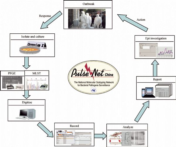 Surveillance is critical for the prevention and control of infectious disease. China’s real-time web-based infectious disease reporting system is a distinguished achievement. However, many aspects of the current China Infectious Disease Surveillance System do not yet meet the demand for timely outbreak detection and identification of emerging infectious disease. PulseNet, the national molecular typing network for foodborne disease surveillance was first established by the Centers for Disease Control and Prevention of the United States in 1995 and has proven valuable in the early detection of outbreaks and tracing the pathogen source. Since 2001, the China CDC laboratory for bacterial pathogen analysis has been a member of the PulseNet International family; and has been adapting the idea and methodology of PulseNet to develop a model for a future national laboratory-based surveillance system for all bacterial infectious disease. We summarized the development progress for the PulseNet China system and discussed it as a model for the future of China’s national laboratory-based surveillance system.
