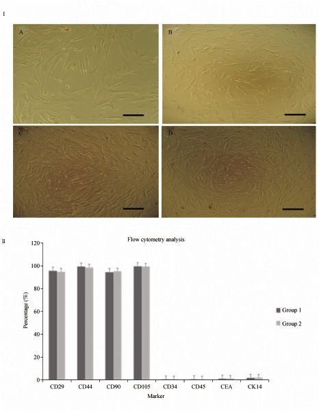 Human umbilical cord-derived mesenchymal stem cells (hUC-MSCs) possess various advantageous properties, including self-renewal, extended proliferation potential, multi-lineage differentiation potential and capacity for differentiating into sweat gland-like cells in certain conditions. However, little is known about the effect of clinical-grade culture conditions on these properties and on the differentiative potential of hUC-MSCs. In this study, we sought to investigate the properties of hUC-MSCs expanded with animal serum free culture media (ASFCM) in order to determine their potential for differentiation into sweat gland-like cells. We found that primary cultures of hUC-MSCs could be established with ASFCM. Moreover, cells cultured in ASFCM showed vigorous proliferation comparable to those of cells grown in classical culture conditions containing fetal bovine serum (FBS). Morphology of hUC-MSCs cultured in ASFCM was comparable to those of cells grown under classical culture conditions, and hUC-MSCs grown in both of the two culture conditions tested showed the typical antigen profile of MSCs—positive for CD29, CD44, CD90, and CD105, and negative for CD34 and CD45, as expected. Chromosomal aberration assay revealed that the cells were stable after long-term culture under both culture conditions. Like normal cultured MSCs, hUC-MSCs induced under ASFCM conditions exhibited expression of the same markers (CEA, CK14 and CK19) and developmental genes (EDA and EDAR) that are characteristic of normal sweat gland cells. Taken together, our findings indicate that the classical culture medium used to differentiate hUC-MSCs into sweat gland-like cells can be replaced safely by ASFCM for clinical purposes.