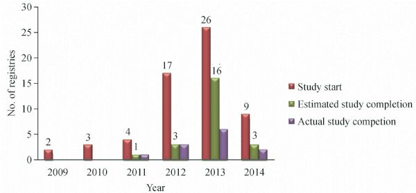 Increasing emphasis has been placed on registries for an organized system used in developing clinical research to improve health care. China has sufficient data that can be applied broadly, but the heterogeneity and irregularity of registries limit their applicability. This article aims to describe the status of registries in China and the related challenges. Patient registries for observational studies were retrieved from the International Clinical Trials Registry to quantitatively evaluate the number of comparatively high-quality registries in China. A literature search was also performed to provide support and updates. A total of 64 patient registries were retrieved from ClinicalTrials.gov using disease, product, and health service as criteria. The sample sizes ranged from 15 to 30 400, with only 12 registries marked as completed. This article describes and compares the detailed information in many aspects. The efficient use of registries has already made considerable progress in China; however, registries still require standardization, high-quality transition, and coordinated development.