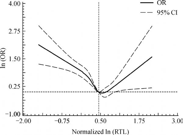 Telomeres play a critical role in biological ageing by maintaining chromosomal integrity and preventing chromosome ends fusion. Epidemiological studies have suggested that inter-individual differences of telomere length could affect predisposition to multiple cancers, but evidence regarding esophageal squamous cell carcinoma (ESCC) was still uncertain. Several telomere length-related single nucleotide polymorphisms (TL-SNPs) in Caucasians have been reported in genome-wide association studies. However, the effects of telomere length and TL-SNPs on ESCC development are unclear. Therefore, we conducted a case-control study (1045 ESCC cases and 1433 controls) to evaluate the associations between telomere length, TL-SNPs, and ESCC risk in Chinese population. As a result, ESCC cases showed overall shorter relative telomere length (RTL) (median: 1.34) than controls (median: 1.50, P<0.001). More interestingly, an evident nonlinear U-shaped association was observed between RTL and ESCC risk (P<0.001), with odds ratios (95% confidence interval) equal to 2.40 (1.84–3.14), 1.36 (1.03–1.79), 1.01 (0.76–1.35), and 1.37 (1.03–1.82) for individuals in the 1st (the shortest), 2nd, 3rd, and 5th (the longest) quintile, respectively, compared with those in the 4th quintile as reference group. No significant associations were observed between the eight reported TL-SNPs and ESCC susceptibility. These findings suggest that either short or extremely long telomeres may be risk factors for ESCC in the Chinese population.