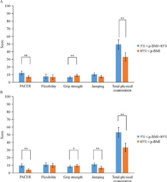 Understanding obesity in children is crucial because it can lead to adulthood obesity and result in fatal chronic diseases. Distinctive factors associated with obesity in adults have been described, but distinctive factors related to children remain unclear. We analyzed the correlation between the percentage of body mass index and lifestyle habits by conducting surveys on physical, nutritional, and psychological factors, and we used annual physical examination data to compare different traits among elementary school students (n = 197) and middle school students (n = 461). Our study revealed that the computing hours in elementary school students with overweight and obesity were significantly correlated with the percentage of body mass index (r = 0.29 on school days and r = 0.35 on days off, all P<0.05). No statistically significant difference was found (all P>0.05) in the computing hours of middle school students with overweight and obesity. Childhood obesity can cause depression and reduce children’s quality of life because of their distorted body perception. In conclusion, physical factors directly affecting childhood obesity and psychological and environmental factors surrounding a child should be considered.
