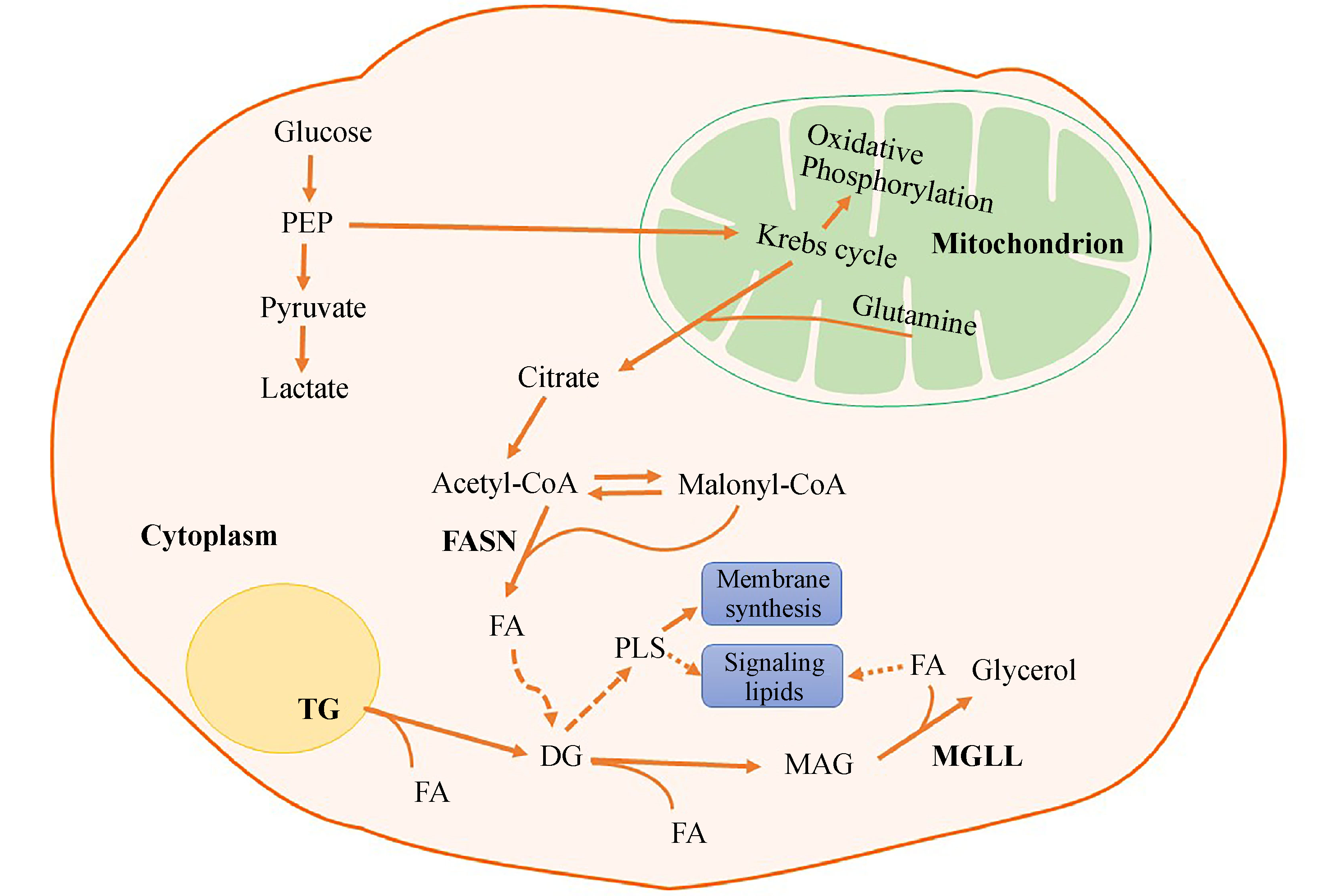 Tumorigenesis involves metabolic reprogramming and abnormal lipid metabolism, which is manifested by increased endogenous fat mobilization, hypertriglyceridemia, and increased fatty acid synthesis. Fatty acid synthase (FASN) is a key enzyme for the de novo synthesis of fatty acids, and monoacylglycerol esterase (MGLL) is an important metabolic enzyme that converts triglycerides into free fatty acids. Both enzymes play an important role in lipid metabolism and are associated with tumor-related signaling pathways, the most common of which is the PI3K–AKT signaling pathway. They can also regulate the immune microenvironment, participate in epithelial–mesenchymal transition, and then regulate tumor invasion and metastasis. Current literature have shown that these two genes are abnormally expressed in many types of tumors and are highly correlated with tumor migration and invasion. This article introduces the structures and functions of FASN and MGLL, their relationship with abnormal lipid metabolism, and the mechanism of the regulation of tumor invasion and metastasis and reviews the research progress of the relationship of FASN and MGLL with tumor invasion and metastasis.