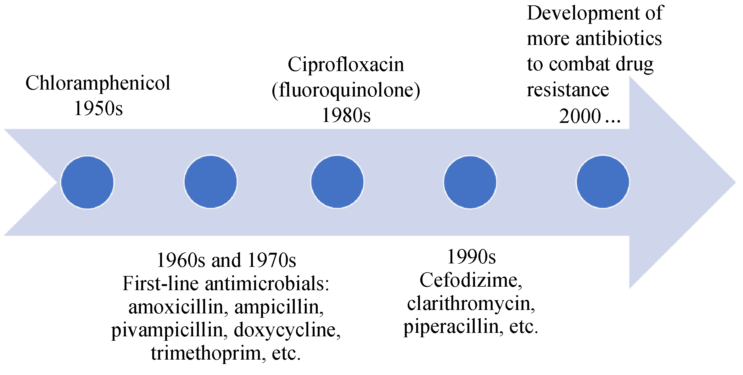 Resistome is a cluster of microbial genes encoding proteins with necessary functions to resist the action of antibiotics. Resistome governs essential and separate biological functions to develop resistance against antibiotics. The widespread clinical and nonclinical uses of antibiotics over the years have combined to select antibiotic-resistant determinants and develop resistome in bacteria. At present, the emergence of drug resistance because of resistome is a significant problem faced by clinicians for the treatment of Salmonella infection. Antibiotic resistome is a dynamic and ever-expanding component in Salmonella. The foundation of resistome in Salmonella is laid long before; therefore, the antibiotic resistome of Salmonella is reviewed, discussed, and summarized. We have searched the literature using PubMed, MEDLINE, and Google Scholar with related key terms (resistome, Salmonella, antibiotics, drug resistance) and prepared this review. In this review, we summarize the status of resistance against antibiotics in S. typhi, highlight the seminal work in the resistome of S. typhi and the genes involved in the antibiotic resistance, and discuss the various methods to identify S. typhi resistome for the proactive identification of this infection and quick diagnosis of the disease.