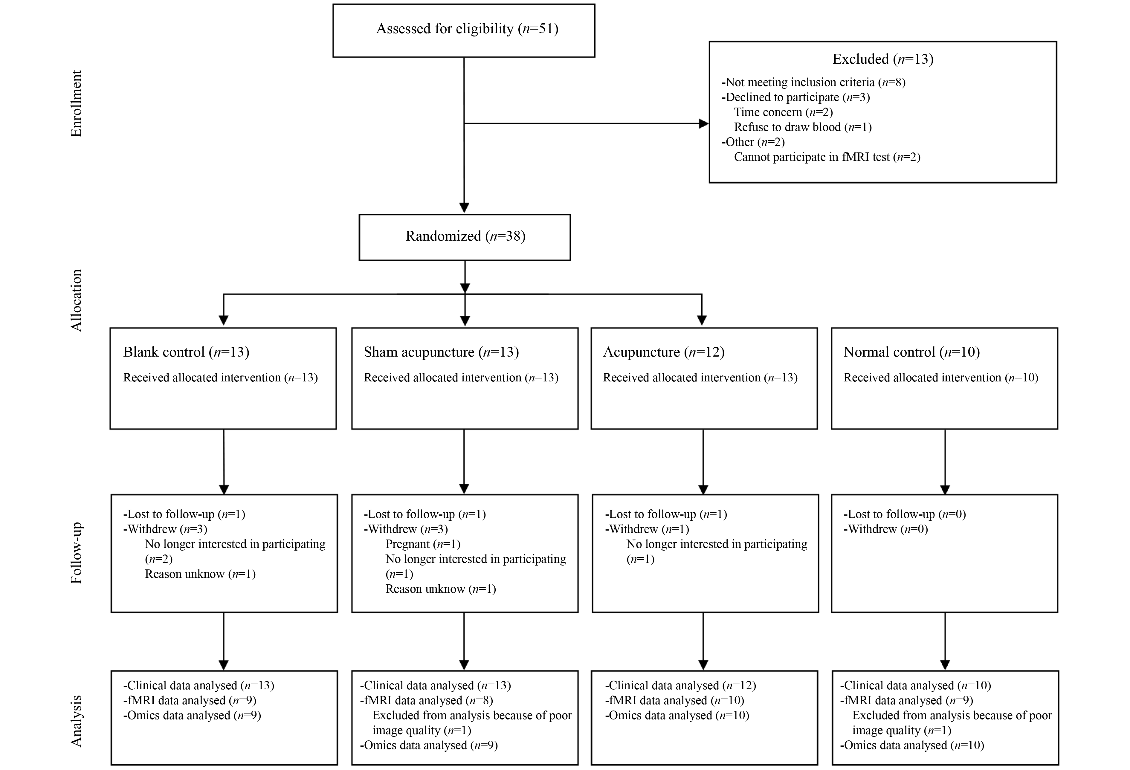 Migraine is one of the most prevalent and disabling neurological disease, but the current pharmacotherapies show limited efficacy and often accompanied by adverse effects. Acupuncture is a promising complementary therapy, but further clinical evidence is needed. The influence of acupuncture on migraine is not an immediate effect, and its mechanism remains unclear. This study aims to provide further clinical evidence for the anti-migraine effects of acupuncture and explore the mechanism involved. A randomized controlled trial was performed among 10 normal controls and 38 migraineurs. The migraineurs were divided into blank control, sham acupuncture, and acupuncture groups. Patients were subjected to two courses of treatment, and each treatment lasted for 5 days, with an interval of 1 day between the two courses. The effectiveness of treatment was evaluated using pain questionnaire. The functional magnetic resonance imaging (fMRI) data were analyzed for investigating brain changes induced by treatments. Blood plasma was collected for metabolomics and proteomics studies. Correlation and mediation analyses were performed to investigate the interaction between clinical, fMRI and omics changes. Results showed that acupuncture effectively relieved migraine symptoms in a way different from sham acupuncture in terms of curative effect, affected brain regions, and signaling pathways. The anti-migraine mechanism involves a complex network related to the regulation of the response to hypoxic stress, reversal of brain energy imbalance, and regulation of inflammation. The brain regions of migraineurs affected by acupuncture include the lingual gyrus, default mode network, and cerebellum. The effect of acupuncture on patients’ metabolites/proteins may precede that of the brain.