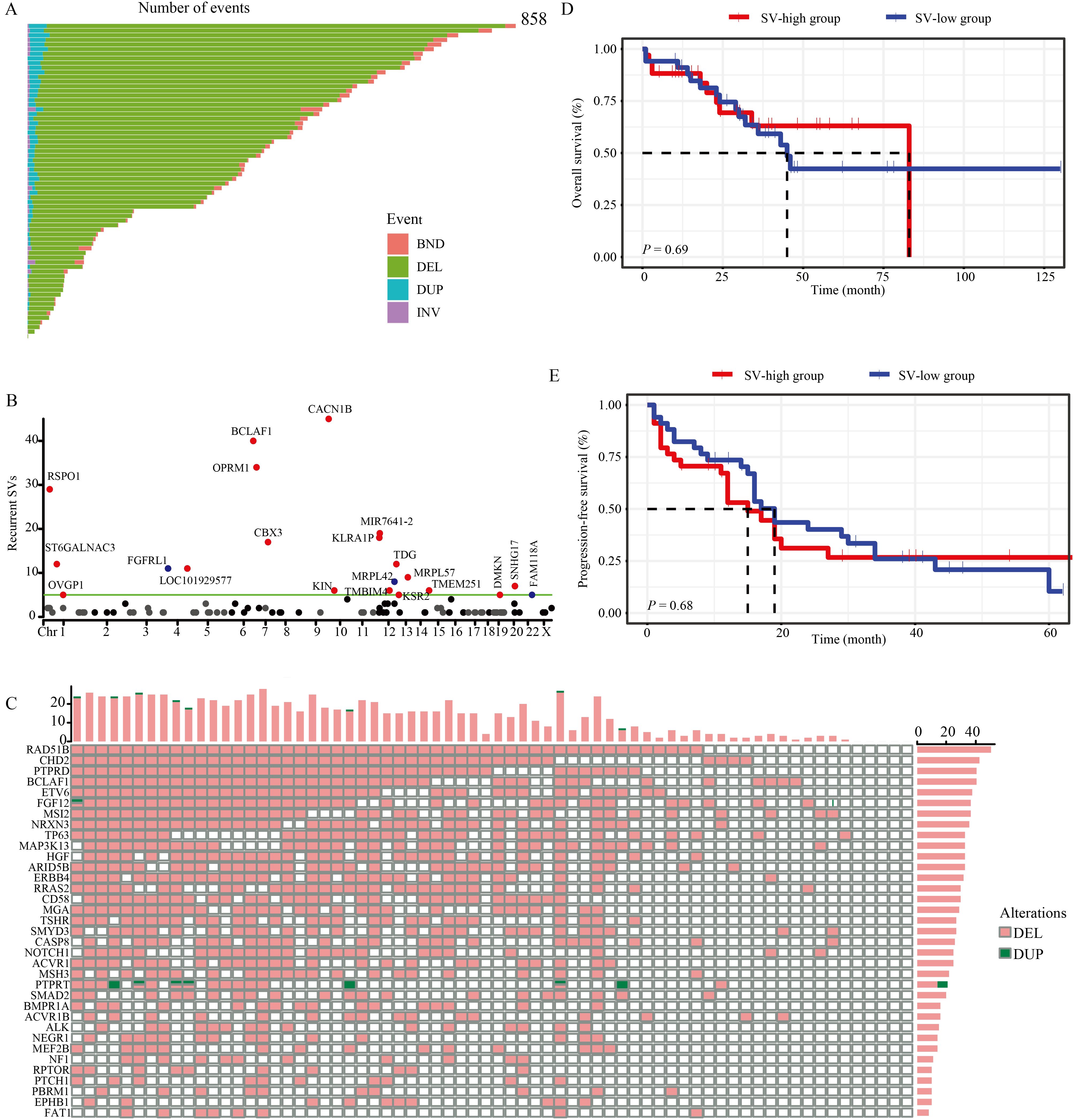 Primary central nervous system lymphoma (PCNSL) is an uncommon non-Hodgkin’s lymphoma with poor prognosis. This study aimed to depict the genetic landscape of Chinese PCNSLs. Whole-genome sequencing was performed on 68 newly diagnosed Chinese PCNSL samples, whose genomic characteristics and clinicopathologic features were also analyzed. Structural variations were identified in all patients with a mean of 349, which did not significantly influence prognosis. Copy loss occurred in all samples, while gains were detected in 77.9% of the samples. The high level of copy number variations was significantly associated with poor progression-free survival (PFS) and overall survival (OS). A total of 263 genes mutated in coding regions were identified, including 6 newly discovered genes (ROBO2, KMT2C, CXCR4, MYOM2, BCLAF1, and NRXN3) detected in ≥ 10% of the cases. CD79B mutation was significantly associated with lower PFS, TMSB4X mutation and high expression of TMSB4X protein was associated with lower OS. A prognostic risk scoring system was also established for PCNSL, which included Karnofsky performance status and six mutated genes (BRD4, EBF1, BTG1, CCND3, STAG2, and TMSB4X). Collectively, this study comprehensively reveals the genomic landscape of newly diagnosed Chinese PCNSLs, thereby enriching the present understanding of the genetic mechanisms of PCNSL.