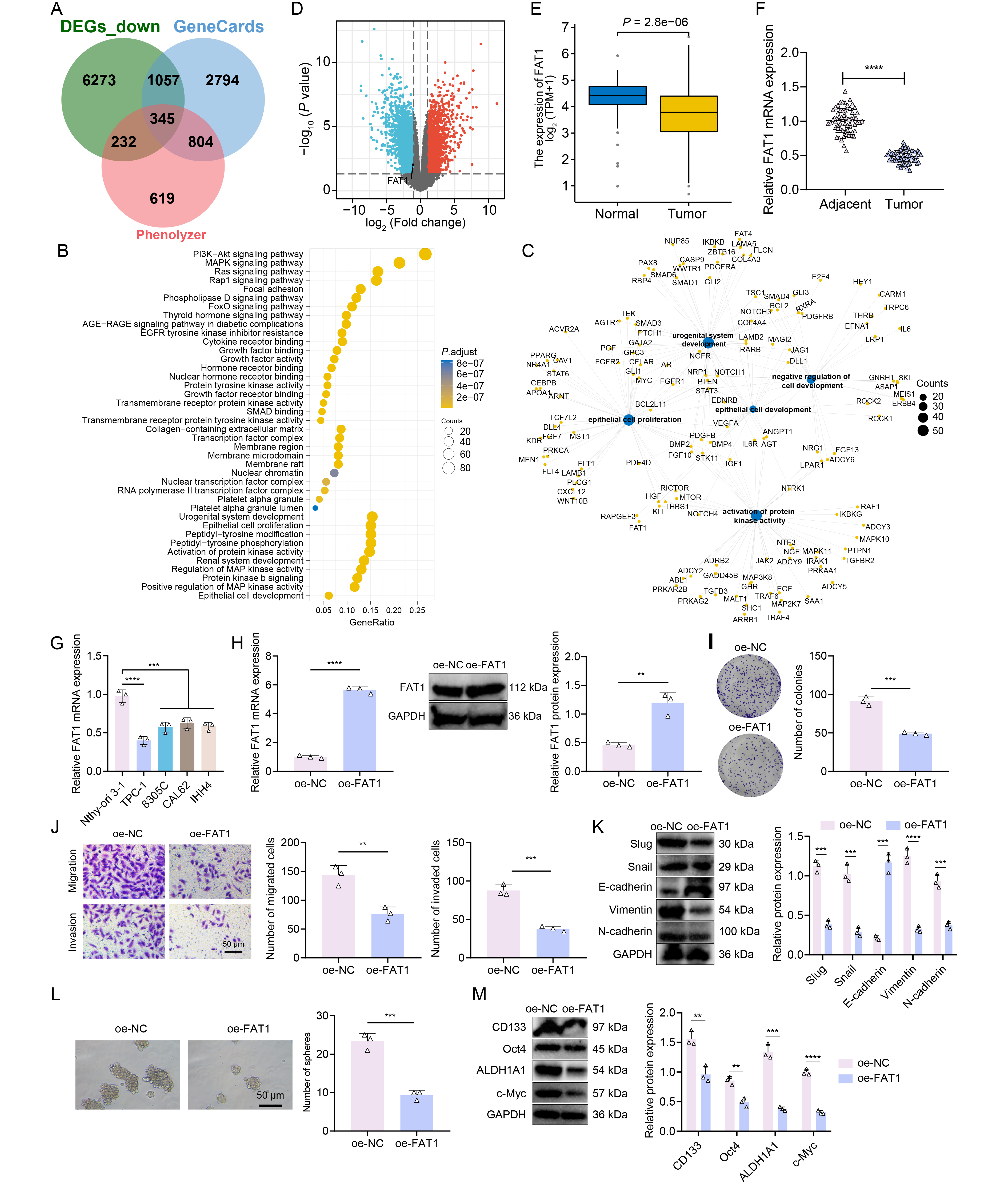 Through bioinformatics predictions, we identified that GTF2I and FAT1 were downregulated in thyroid carcinoma (TC). Further, Pearson’s correlation coefficient revealed a positive correlation between GTF2I expression and FAT1 expression. Therefore, we selected them for this present study, where the effects of bone marrow mesenchymal stem cell-derived EVs (BMSDs-EVs) enriched with GTF2I were evaluated on the epithelial–to–mesenchymal transition (EMT) and stemness maintenance in TC. The under-expression of GTF2I and FAT1 was validated in TC cell lines. Ectopically expressed GTF2I and FAT1 were found to augment malignant phenotypes of TC cells, EMT, and stemness maintenance. Mechanistic studies revealed that GTF2I bound to the promoter region of FAT1 and consequently upregulated its expression. MSC-EVs could shuttle GTF2I into TPC-1 cells, where GTF2I inhibited TC malignant phenotypes, EMT, and stemness maintenance by increasing the expression of FAT1 and facilitating the FAT1-mediated CDK4/FOXM1 downregulation. In vivo experiments confirmed that silencing of GTF2I accelerated tumor growth in nude mice. Taken together, our work suggests that GTF2I transferred by MSC-EVs confer antioncogenic effects through the FAT1/CDK4/FOXM1 axis and may be used as a promising biomarker for TC treatment.