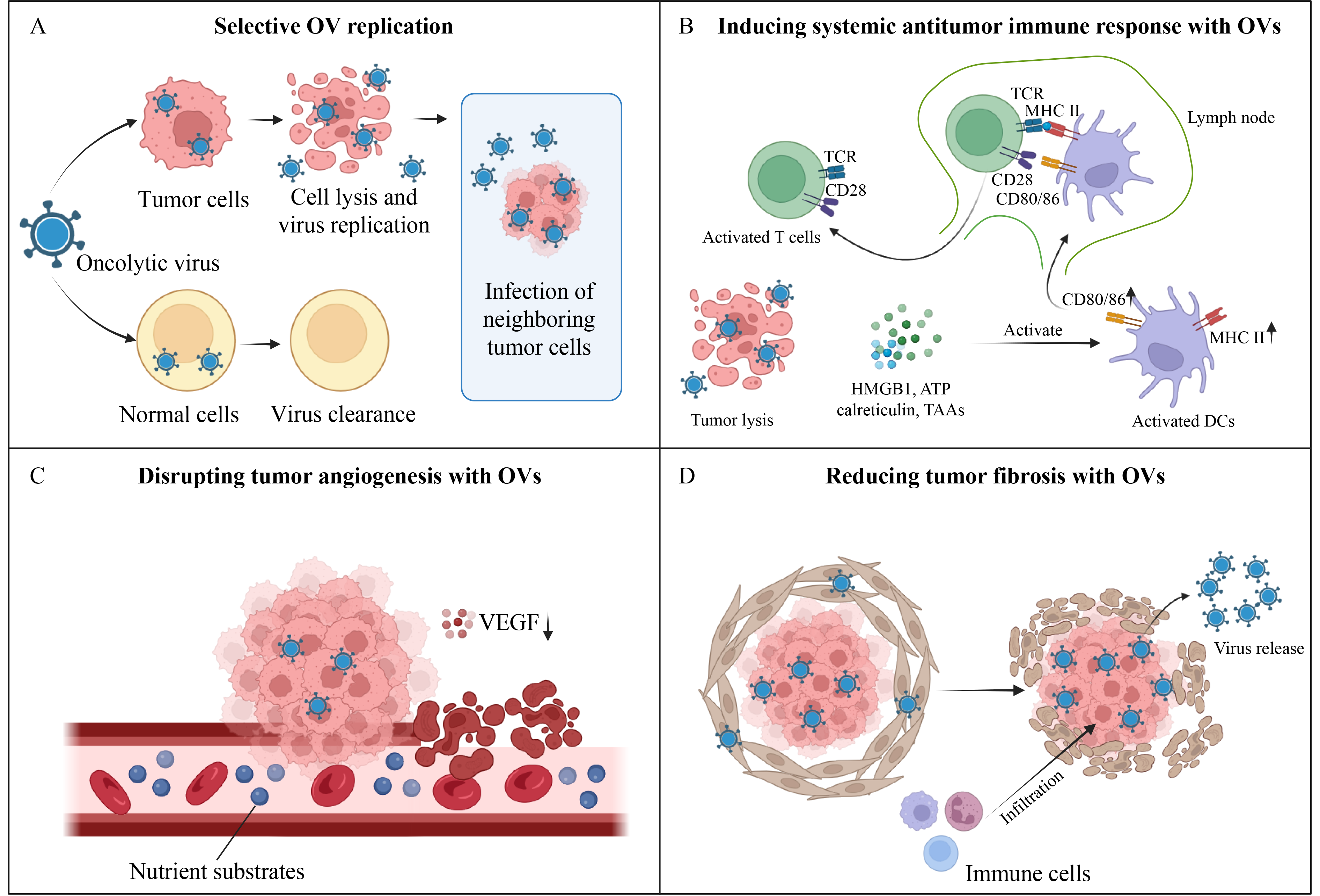 Oncolytic virus (OV)-based immunotherapy has emerged as a promising strategy for cancer treatment, offering a unique potential to selectively target malignant cells while sparing normal tissues. However, the immunosuppressive nature of tumor microenvironment (TME) poses a substantial hurdle to the development of OVs as effective immunotherapeutic agents, as it restricts the activation and recruitment of immune cells. This review elucidates the potential of OV-based immunotherapy in modulating the immune landscape within the TME to overcome immune resistance and enhance antitumor immune responses. We examine the role of OVs in targeting specific immune cell populations, including dendritic cells, T cells, natural killer cells, and macrophages, and their ability to alter the TME by inhibiting angiogenesis and reducing tumor fibrosis. Additionally, we explore strategies to optimize OV-based drug delivery and improve the efficiency of OV-mediated immunotherapy. In conclusion, this review offers a concise and comprehensive synopsis of the current status and future prospects of OV-based immunotherapy, underscoring its remarkable potential as an effective immunotherapeutic agent for cancer treatment.