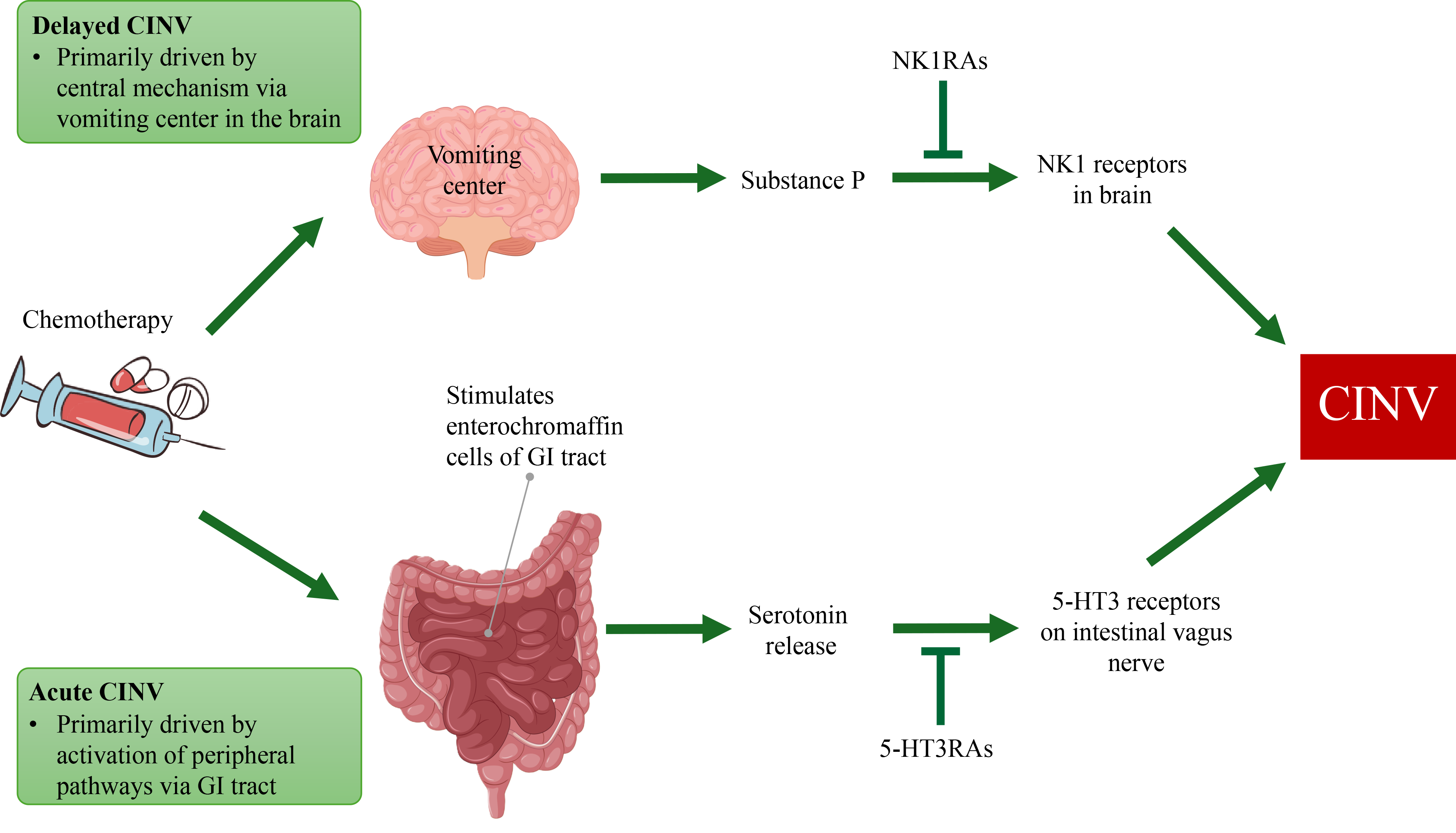 Chemotherapy-induced nausea and vomiting (CINV) is common in patients receiving moderately or highly emetogenic chemotherapy and is caused by the activation of peripheral and central nervous system pathways, with the neurokinin-1 receptor playing a central role in delayed CINV. Neurokinin-1 receptor antagonists (NK1RAs) in combination with other antiemetic agents are recommended in international and Chinese guidelines for the prevention of acute and delayed CINV. Therefore, a summary of current data for NK1RAs would be of great clinical utility. This article summarizes the available clinical and real-world data on the use of NK1RAs in CINV prophylaxis, with a focus on evidence from China, where three NK1RAs, aprepitant, fosaprepitant and netupitant, are currently approved. NK1RAs have demonstrated efficacy and favorable safety in the prevention of acute and delayed CINV. Further research is required to determine the optimal use of these drugs and to identify strategies for CINV management in specific patient populations.