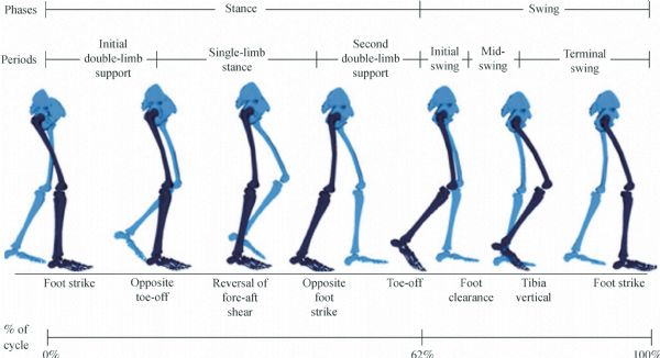 Gait is the collective term for the two types of bipedal locomotion, walking and running. This paper is focused on walking. The analysis of human gait is of interest to many different disciplines, including biomechanics, human-movement science, rehabilitation and medicine in general. Here we present a new model that is capable of reproducing the properties of walking, normal and pathological. The aim of this paper is to establish the biomechanical principles that underlie human walking by using Lagrange method. The constraint forces of Rayleigh dissipation function, through which to consider the effect on the tissues in the gait, are included. Depending on the value of the factor present in the Rayleigh dissipation function, both normal and pathological gait can be simulated. First of all, we apply it in the normal gait and then in the permanent hemiparetic gait. Anthropometric data of adult person are used by simulation, and it is possible to use anthropometric data for children but is necessary to consider existing table of anthropometric data. Validation of these models includes simulations of passive dynamic gait that walk on level ground. The dynamic walking approach provides a new perspective of gait analysis, focusing on the kinematics and kinetics of gait. There have been studies and simulations to show normal human gait, but few of them have focused on abnormal, especially hemiparetic gait. Quantitative comparisons of the model predictions with gait measurements show that the model can reproduce the significant characteristics of normal gait.