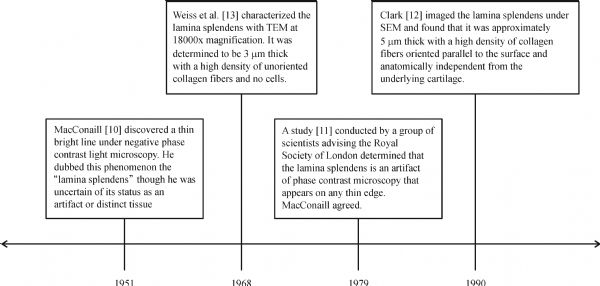 Joint disease affects approximately 52.5 million patients in the United States alone, costing 80.8 billion USD in direct healthcare costs. The development of treatment programs for joint disease and trauma requires accurate assessment of articular cartilage degradation. The articular cartilage is the interfacial tissue between articulating surfaces, such as bones, and acts as low-friction interfaces. Damage to the lamina splendens, which is the articular cartilage’s topmost layer, is an early indicator of joint degradation caused by injury or disease. By gaining comprehensive knowledge on the lamina splendens, particularly its structure and interfacial properties, researchers could enhance the accuracy of human and animal biomechanical models, as well as develop appropriate biomimetic materials for replacing damaged articular cartilage, thereby leading to rational treatment programs for joint disease and injury. Previous studies that utilize light, electron, and force microscopy techniques have found that the lamina splendens is composed of collagen fibers oriented parallel to the cartilage surface and encased in a proteoglycan matrix. Such orientation maximizes wear resistance and proteoglycan retention while promoting the passage of nutrients and synovial fluid. Although the structure of the lamina splendens has been explored in the literature, the low-friction interface of this tissue remains only partially characterized. Various functional models are currently available for the interface, such as pure boundary lubrication, thin films exuded under pressure, and sheets of trapped proteins. Recent studies suggest that each of these lubrication models has certain advantages over one another. Further research is needed to fully model the interface of this tissue. In this review, we summarize the methods for characterizing the lamina splendens and the results of each method. This paper aims to serve as a resource for existing studies to date and a roadmap of the investigations needed to gain further insight into the lamina splendens and the progression of joint disease.