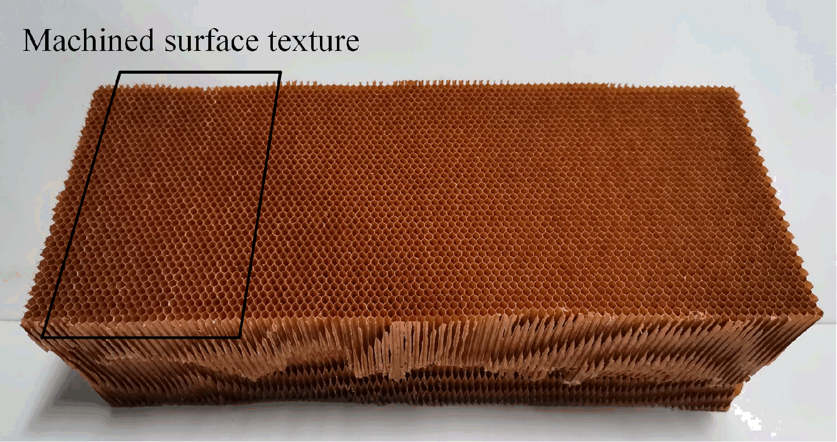 Ultrasonic cutting with a disc cutter is an advanced machining method for the high-quality processing of Nomex honeycomb core. The machining quality is influenced by ultrasonic cutting parameters, as well as tool orientations, which are determined by the multi-axis machining requirements and the angle control of the cutting system. However, in existing research, the effect of the disc cutter orientation on the machining quality has not been studied in depth, and practical guidance for the use of disc cutters is lacking. In this work, the inclined ultrasonic cutting process with a disc cutter was analyzed, and cutting experiments with different inclination angles were conducted. The theoretical residual height models of the honeycomb core, as a result of the lead and tilt angles, were established and verified with the results obtained by a linear laser displacement sensor. Research shows that the residual height of the honeycomb core, as a result of the tilt angle, is much larger than that as a result of the lead angle. Furthermore, the tearing of the cell wall on the machined surface was observed, and the effects of the ultrasonic vibration, lead angle, and tilt angle on the tear rate and tear length of the cell wall were studied. Experimental results revealed that ultrasonic vibration can effectively decrease the tearing of the cell wall and improve the machining quality. Changes in the tilt angle have less effect than changes in the lead angle on the tearing of the cell wall. The determination of inclination angles should consider the actual processing requirements for the residual height and the machining quality of the cell wall. This study investigates the influence of the inclination angles of a disc cutter on the machining quality of Nomex honeycomb core in ultrasonic cutting and provides guidelines for machining.