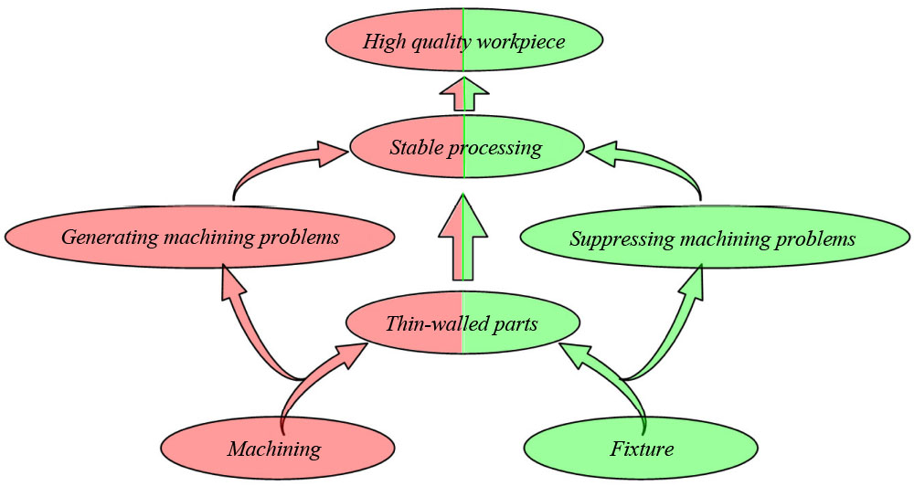 Thin-walled parts (TWPs) are widely used in sophisticated equipment in aerospace, automobile, shipping, nuclear industry, and other fields. Nevertheless, the characteristics of TWPs, such as their low stiffness, uneven stress distribution, and strong time-varying characteristics, inevitably lead to some machining-induced problems, including deformation, vibration, and low