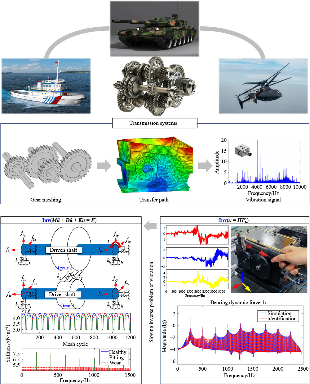 Gearbox fault diagnosis based on vibration sensing has drawn much attention for a long time. For highly integrated complicated mechanical systems, the intercoupling of structure transfer paths results in a great reduction or even change of signal characteristics during the process of original vibration transmission. Therefore, using gearbox housing vibration signal to identify gear meshing excitation signal is of great significance to eliminate the influence of structure transfer paths, but accompanied by huge scientific challenges. This paper establishes an analytical mathematical description of the whole transfer process from gear meshing excitation to housing vibration. The gear meshing stiffness (GMS) identification approach is proposed by using housing vibration signals for two stages of inversion based on the mathematical description. Specifically, the linear system equations of transfer path analysis are first inverted to identify the bearing dynamic forces. Then the dynamic differential equations are inverted to identify the GMS. Numerical simulation and experimental results demonstrate the proposed method can realize gear fault diagnosis better than the original housing vibration signal and has the potential to be generalized to other speeds and loads. Some interesting properties are discovered in the identified GMS spectra, and the results also validate the rationality of using meshing stiffness to describe the actual gear meshing process. The identified GMS has a clear physical meaning and is thus very useful for fault diagnosis of the complicated equipment.