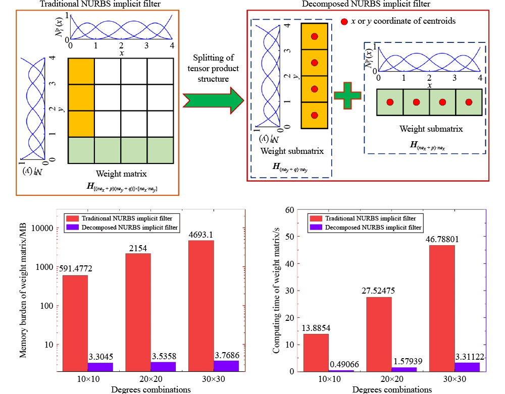 In this work, we put forward a massively efficient filter for topology optimization (TO) utilizing the splitting of tensor product structure. With the aid of splitting technique, the traditional weight matrices of B-splines and non-uniform rational B-spline implicit filters are decomposed equivalently into two or three submatrices, by which the sensitivity analysis is reformulated for the nodal design variables without altering the optimization process. Afterwards, an explicit sensitivity filter, which is decomposed by the splitting pipeline as that applied to implicit filter, is established in terms of the tensor product of the axial distances between adjacent element centroids, and the corresponding sensitivity analysis is derived for elemental design variables. According to the numerical results, the average updating time for the design variables is accelerated by two-order-of-magnitude for the decomposed filter compared with the traditional filter. In addition, the memory burden and computing time of the weight matrix are decreased by six- and three-order-of-magnitude for the decomposed filter. Therefore, the proposed filter is massively improved by the splitting of tensor product structure and delivers a much more efficient way of solving TO problems in the frameworks of isogeometric analysis and finite element analysis.