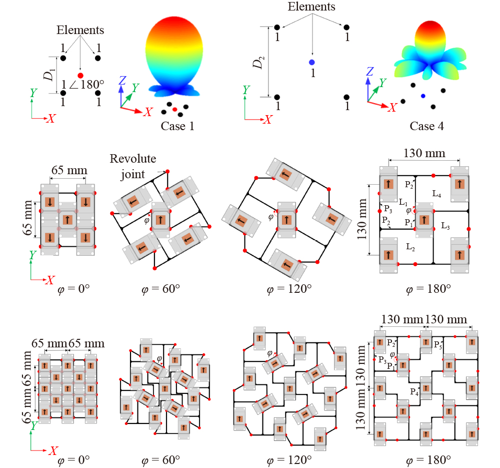 In the artificial intelligence-driven modern wireless communication system, antennas are required to be reconfigurable in terms of size according to changing application scenarios. However, conventional antennas with constant phase distributions cannot achieve enhanced gains in different reconfigurable sizes. In this paper, we propose a mechanically reconfigurable radiation array (RRA) based on miniaturized elements and a mechanically reconfigurable system to obtain gain-enhanced antennas in compact and deployed states. A five-element RRA with a phase-reconfigurable center element is designed and analyzed theoretically. The experimental sample has been fabricated, driven by a deployable frame with only one degree of freedom to realize the size and phase distribution reconfiguration simultaneously to validate the enhanced gains of RRA. The proposed RRA can be tessellated into larger arrays to achieve higher gains in other frequency regimes, such as terahertz or photonics applications with nanometer fabrication technology.