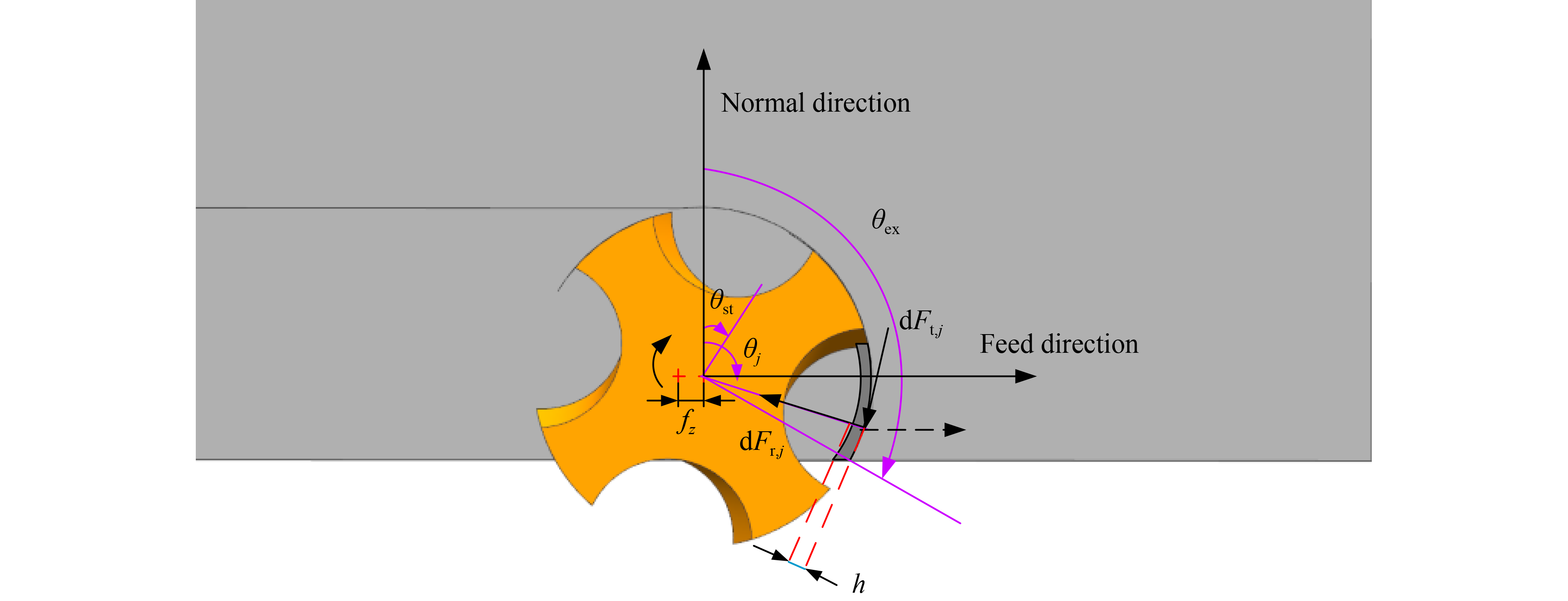 Aerospace aluminum alloy is the most used structural material for rockets, aircraft, spacecraft, and space stations. The deterioration of surface integrity of dry machining and the insufficient heat transfer capacity of minimal quantity lubrication have become the bottleneck of lubrication and heat dissipation of aerospace aluminum alloy. However, the excellent thermal conductivity and tribological properties of nanofluids are expected to fill this gap. The traditional milling force models are mainly based on empirical models and finite element simulations, which are insufficient to guide industrial manufacturing. In this study, the milling force of the integral end milling cutter is deduced by force analysis of the milling cutter element and numerical simulation. The instantaneous milling force model of the integral end milling cutter is established under the condition of dry and nanofluid minimal quantity lubrication (NMQL) based on the dual mechanism of the shear effect on the rake face of the milling cutter and the plow cutting effect on the flank surface. A single factor experiment is designed to introduce NMQL and the milling feed factor into the instantaneous milling force coefficient. The average absolute errors in the prediction of milling forces for the NMQL are 13.3%, 2.3%, and 7.6% in the x-, y-, and z-direction, respectively. Compared with the milling forces obtained by dry milling, those by NMQL decrease by 21.4%, 17.7%, and 18.5% in the x-, y-, and z-direction, respectively.