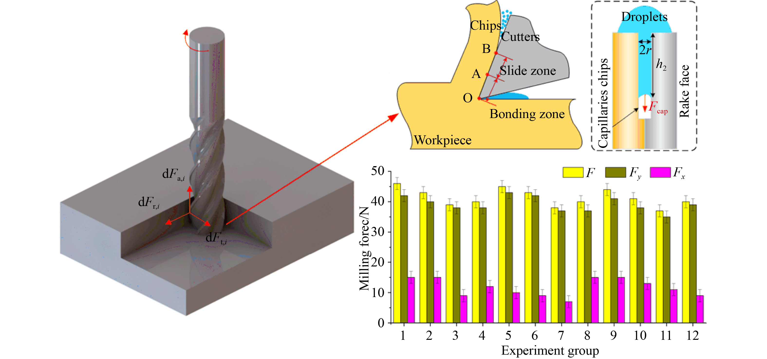 The nickel-based high-temperature alloy GH4169 is the material of choice for manufacturing critical components in aeroengines, and electrostatic atomization minimum quantity lubrication (EMQL) milling represents a fundamental machining process for GH4169. However, the effects of electric field parameters, jet parameters, nozzle position, and milling parameters on milling performance remain unclear, which constrains the broad application of EMQL in aerospace manufacturing. This study evaluated the milling performance of EMQL on nickel-based alloys using soybean oil as the lubrication medium. Results revealed that compared with conventional pneumatic atomization MQL milling, EMQL reduced the milling force by 15.2%–15.9%, lowered the surface roughness by 30.9%–54.2%, decreased the average roughness spacing by 47.4%–58.3%, and decreased the coefficient of friction and the specific energy of cutting by 55% and 19.6%, respectively. Subsequent optimization experiments using orthogonal arrays demonstrated that air pressure most significantly affected the milling force and specific energy of cutting, with a contribution rate of 22%, whereas voltage had the greatest effect on workpiece surface roughness, contributing 36.71%. Considering the workpiece surface morphology and the potential impact of droplet drift on environmental and health safety, the optimal parameter combination identified were a flow rate of 80 mL/h, an air pressure of 0.1 MPa, a voltage of 30 kV, a nozzle incidence angle of 35°, an elevation angle of 30°, and a target distance of 40 mm. This research aimed to provide technical insights for improving the surface integrity of aerospace materials that are difficult to machine during cutting operations.