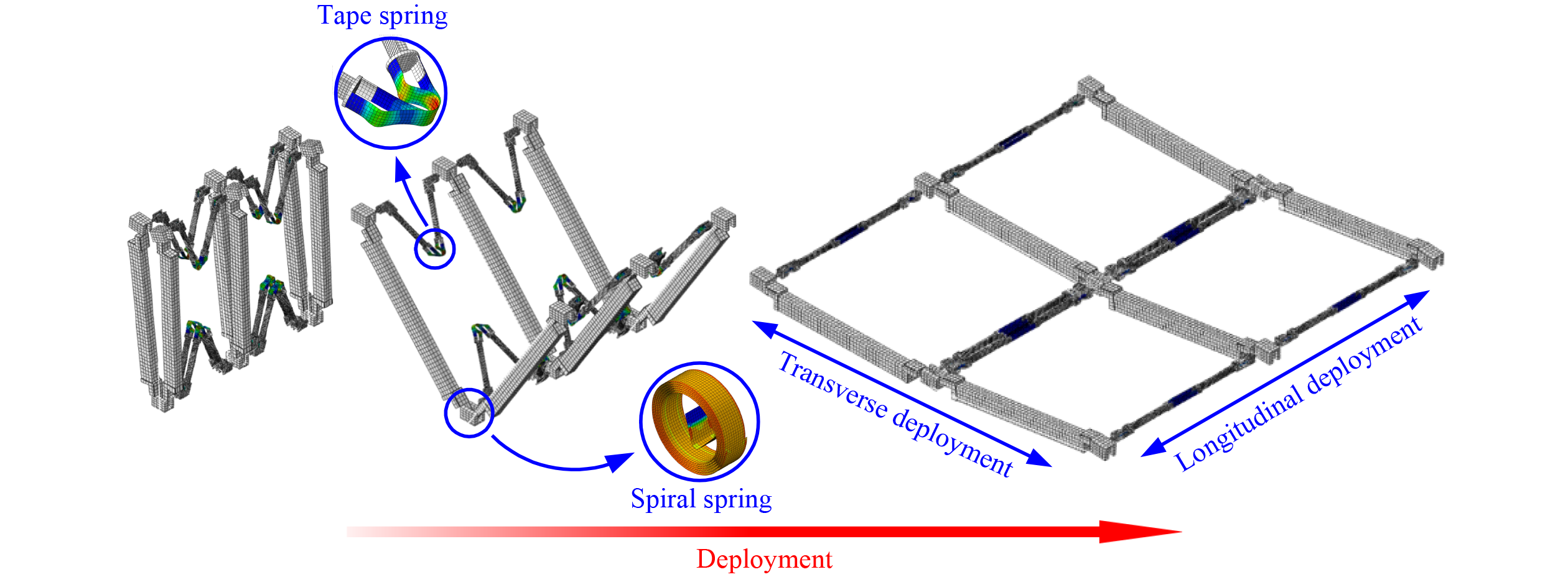 Deployable parabolic cylindrical antennas with lightweight and high deploy/fold ratio are a research hotspot in aerospace. Most of the deployable structures of parabolic cylindrical antennas are double-layer truss structures, which are heavy and oversized in folded volume. The 2D origami-inspired structure is a typical single-layer deployable structure, including multiple origami configurations that provide various strategies for designing single-layer deployable structures. This study proposes a design method for origami-inspired single-layer truss structures applied to deployable parabolic cylindrical mesh reflector antennas. Unlike the widely researched thick-panel origami structure, we adopt the strategy of equating the creases in the origami model as links with constant length, and the vertices are regarded as hinges. The design criteria for an origami-inspired single-layer truss structure are researched and summarized by analyzing the engineering issues during design. Based on this design method, a single-layer deployable truss applied to a parabolic cylindrical antenna is presented. An optimization model of the antenna driving components is established to ensure that the antenna can deploy appropriately on the basis of the co-simulation of MATLAB and finite element software Abaqus. The optimization results are validated through software simulation and prototype test. The work presented in this paper can broaden the application of origami-inspired structures and provide a reference for the design of parabolic cylindrical antennas or curved surface mechanisms.