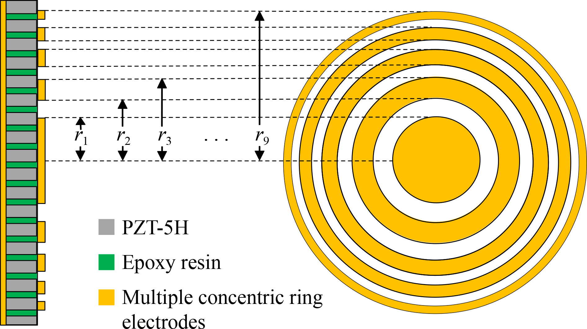 Investigation of a planar active focusing air-coupled ultrasonic transducer using multiple concentric ring electrode patterns