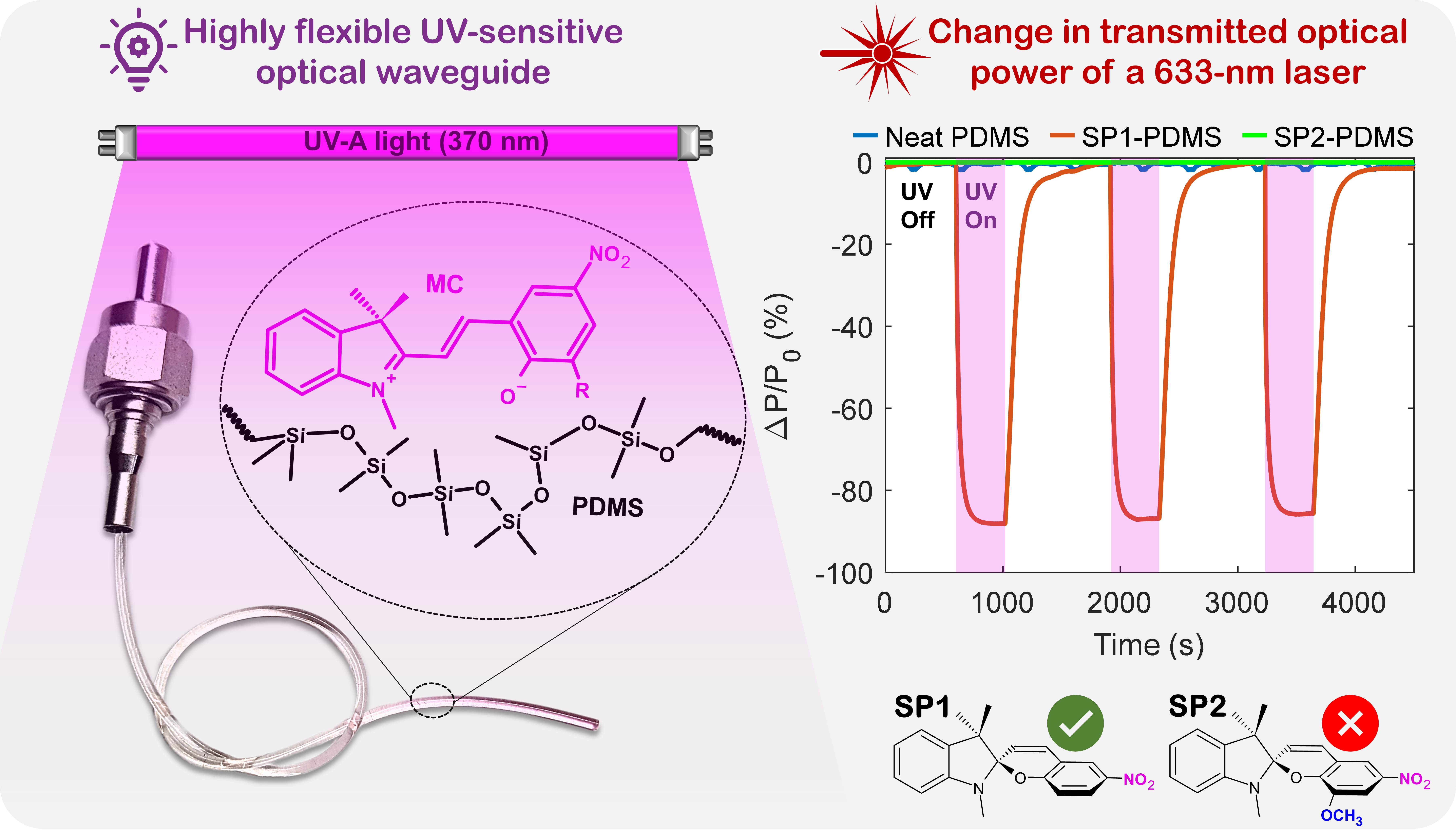 Novel elastomeric spiropyran-doped poly(dimethylsiloxane) optical waveguide for UV sensing