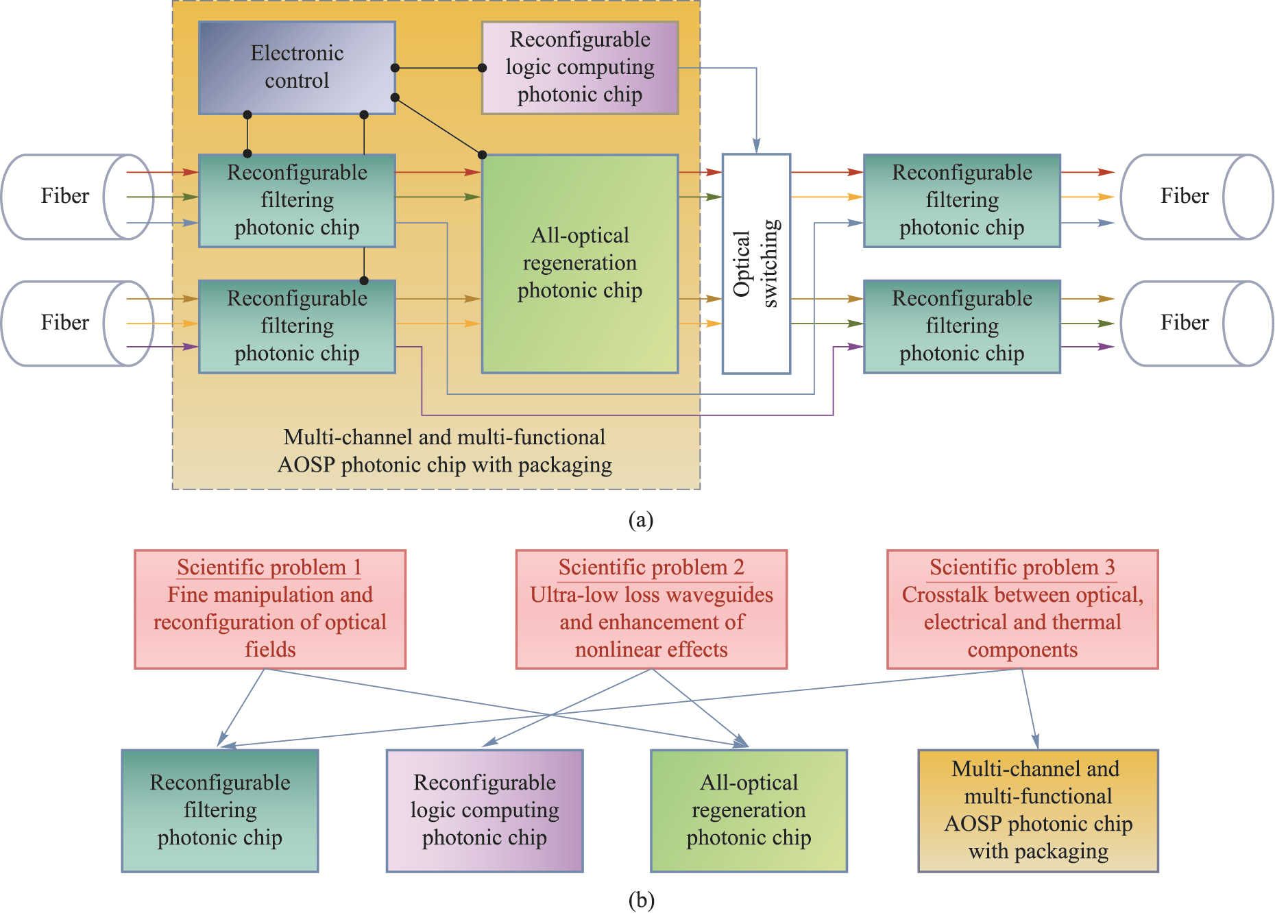 All-optical signal processing (AOSP) / Optical nonlinearity / Low-loss silicon waveguides / Reconfigurable optical filters / Programmable optical logic array / Optical regeneration / High-density optoelectronic packaging