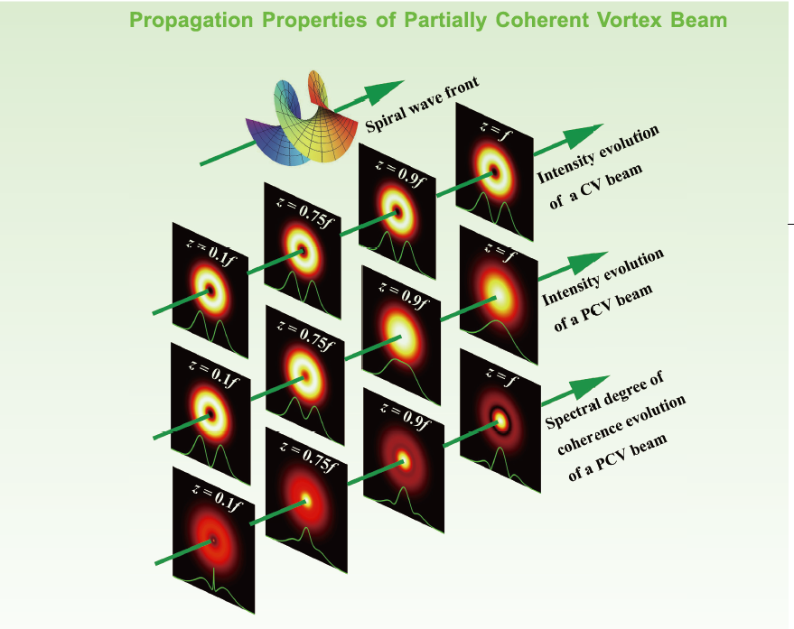 Vortex beam with low spatial coherence is called partially coherent vortex (PCV) beam. In contrast with a coherent vortex (CV) beam whose intensity distribution maintains a doughnut profile during propagation in free space, the intensity of a PCV beam evolves gradually from a doughnut profile to a Gaussian profile upon propagation. The most exciting property of a PCV beam is that its spectral degree of coherence (SCD) displays ring dislocations (i.e., coherence singularities) in the far field, and the topical charge information can be inferred from the ring disloc [Detail] ...