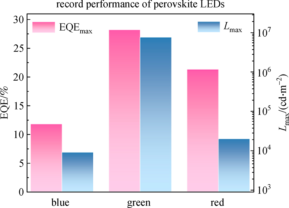 Halide perovskites are very promising for display applications because of their excellent luminescence yield, tunable color in the visible spectrum, high color purity, and low material cost. In recent years, perovskite-based light-emitting diodes (PeLEDs) have obtained significant progress in terms of luminance, external quantum efficiency, and stability. Now the device metrics of best-performing blue, green, and red PeLEDs are summarized and compared, in a hope to bring researchers in this field an overview of state-of-art of PeLEDs’ performance.