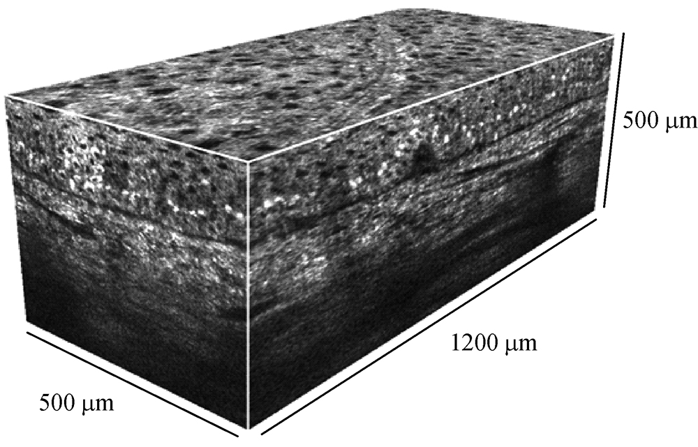 This paper reports on the latest advances in line-field confocal optical coherence tomography (LC-OCT), a recently invented imaging technology that now allows the generation of either horizontal (x× y) section images at an adjustable depth or vertical (x× z) section images at an adjustable lateral position, as well as three-dimensional images. For both two-dimensional imaging modes, images are acquired in real-time, with real-time control of the depth and lateral positions. Three-dimensional (x× y× z) images are acquired from a stack of horizontal section images. The device is in the form of a portable probe. The handle of the probe has a button and a scroll wheel allowing the user to control the imaging modes. Using a supercontinuum laser as a broadband light source and a high numerical microscope objective, an isotropic spatial resolution of ~1 mm is achieved. The field of view of the three-dimensional images is 1.2 mm × 0.5 mm × 0.5 mm (x× y× z). Images of skin tissues are presented to demonstrate the potential of the technology in dermatology.