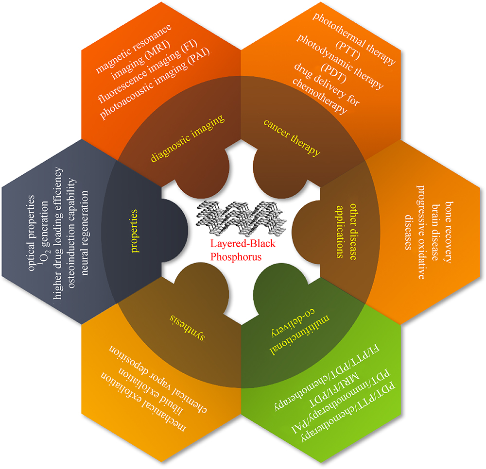 As an outstanding two-dimensional material, black phosphorene, has attracted significant attention in the biomedicine field due to its large surface area, strong optical absorption, distinct bioactivity, excellent biocompatibility, and high biodegradability. In this review, the preparation and properties of black phosphorene are summarized first. Thereafter, black phosphorene-based multifunctional platforms employed for the diagnosis and treatment of diseases, including cancer, bone injuries, brain diseases, progressive oxidative diseases, and kidney injury, are reviewed in detail. This review provides a better understanding of the exciting properties of black phosphorene, such as its high drug-loading efficiency, photothermal conversion capability, high 1O2 generation efficiency, and high electrical conductivity, as well as how these properties can be exploited in biomedicine. Finally, the research perspectives of black phosphorene are discussed.