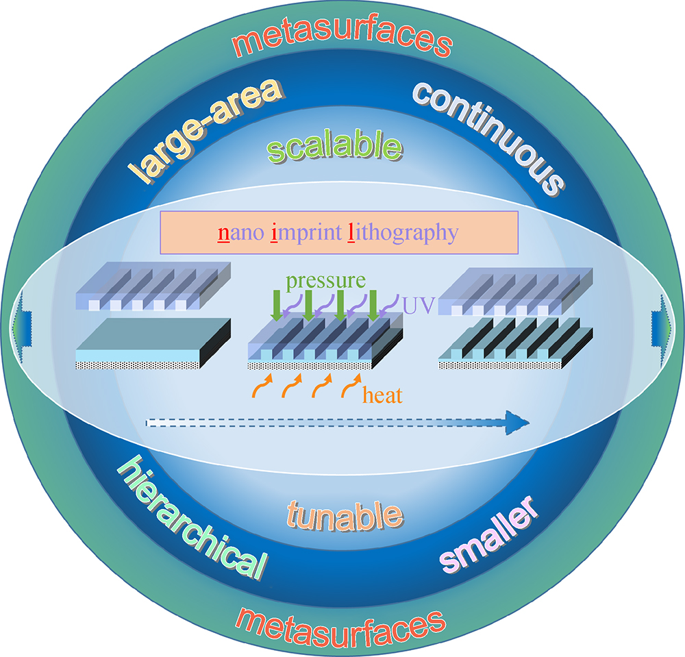 Metasurfaces are composed of periodic subwavelength nanostructures and exhibit optical properties that are not found in nature. They have been widely investigated for optical applications such as holograms, wavefront shaping, and structural color printing, however, electron-beam lithography is not suitable to produce large-area metasurfaces because of the high fabrication cost and low productivity. Although alternative optical technologies, such as holographic lithography and plasmonic lithography, can overcome these drawbacks, such methods are still constrained by the optical diffraction limit. To break through this fundamental problem, mechanical nanopatterning processes have been actively studied in many fields, with nanoimprint lithography (NIL) coming to the forefront. Since NIL replicates the nanopattern of the mold regardless of the diffraction limit, NIL can achieve sufficiently high productivity and patterning resolution, giving rise to an explosive development in the fabrication of metasurfaces. In this review, we focus on various NIL technologies for the manufacturing of metasurfaces. First, we briefly describe conventional NIL and then present various NIL methods for the scalable fabrication of metasurfaces. We also discuss recent applications of NIL in the realization of metasurfaces. Finally, we conclude with an outlook on each method and suggest perspectives for future research on the high-throughput fabrication of active metasurfaces.