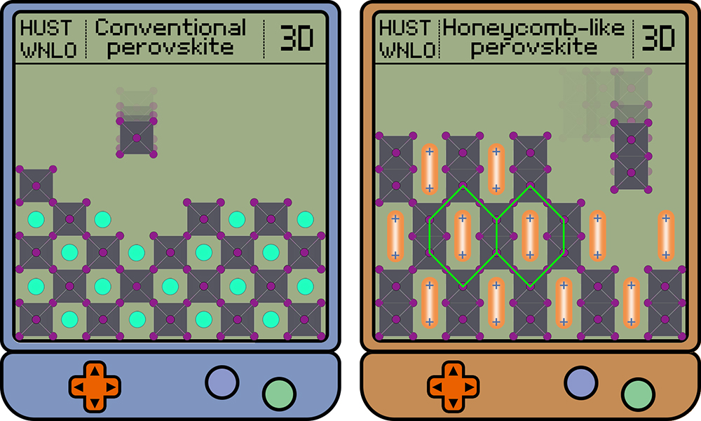 Halide perovskites have attracted tremendous attention as semiconducting materials for various optoelectronic applications. The functional metal-halide octahedral units and their spatial arrangements play a key role in the optoelectronic properties of these materials. At present, most of the efforts for material exploration focus on substituting the constituent elements of functional octahedral units, whereas designing the spatial arrangement of the functional units has received relatively little consideration. In this work, via a global structure search based on density functional theory (DFT), we discovered a metastable three-dimensional honeycomb-like perovskite structure with the functional octahedral units arranged through mixed edge- and corner-sharing. We experimentally confirmed that the honeycomb-like perovskite structure can be stabilized by divalent molecular cations with suitable size and shape, such as 2,2′-bisimidazole (BIM). DFT calculations and experimental characterizations revealed that the honeycomb-like perovskite with the formula of BIMPb2I6, synthesized through a solution process, exhibits high electronic dimensionality, a direct allowed bandgap of 2.1 eV, small effective masses for both electrons and holes, and high optical absorption coefficients, which indicates a significant potential for optoelectronic applications. The employed combination of DFT and experimental study provides an exemplary approach to explore prospective optoelectronic semiconductors via spatially arranging functional units.